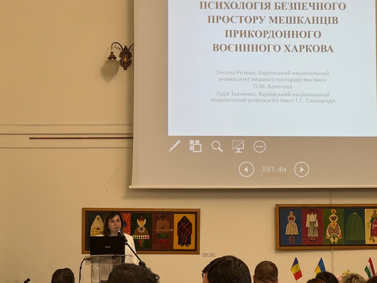 Rezvan Okszana, az O. M. Beketov Harkivi Nemzeti Városgazdálkodási Egyetem Pszichológiai, Pedagógiai és Nyelvképzési Tanszékének vezetője, a pedagógiai tudományok doktora, professzor. Az előadás témája: A biztonságos élettér pszichológiája a katonai határ menti Harkiv város lakói körében.