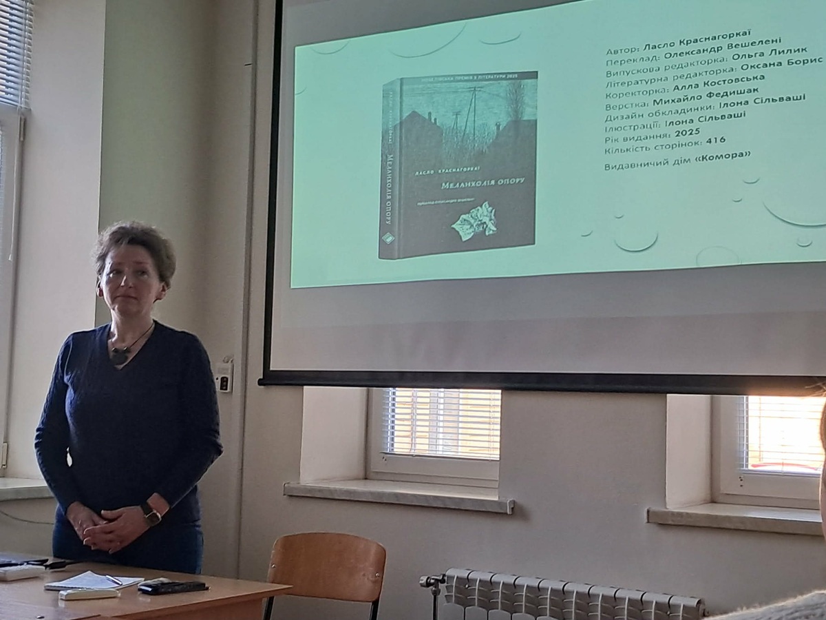 2025. december 10-én Okszana Borys, az Ivan Boberszkij nevét viselő Lembergi Állami Testnevelési Egyetem szerkesztői és kiadói osztályának vezetője a Szerkesztés elmélete és gyakorlata tantárgy keretében előadást tartott a filológia szakos alap- és mesterképzéses hallgatók számára. Az előadás témája Krasznahorkai László Az ellenállás melankóliája (Budapest, Magvető, 2005) című regény fordításának szerkesztési munkálatai voltak.