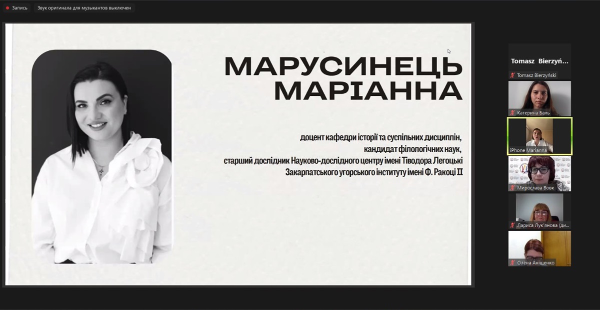 2024. október 28-án Maruszinec Marianna, a filológiai tudományok kandidátusa, a II. Rákóczi Ferenc Kárpátaljai Magyar Főiskola Történelem- és Társadalomtudományi Tanszékének docense, a Lehoczky Tivadar Társadalomtudományi Kutatóközpont tudományos főmunkatársa részt vett a Vegyes oktatás a felsőoktatási intézményekben Ukrajnában és külföldön című nemzetközi résztvevőkkel megrendezett országos tudományos és szakmai konferencián.