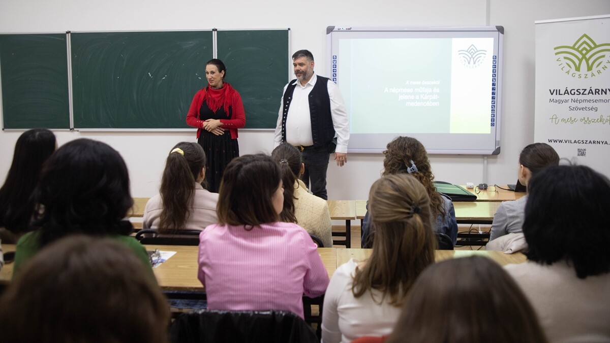 Őt követte Pintér Zsolt mesemondó, felnőttképzési szakember, a Világszárnya Magyar Népmesemondó Szövetség elnöke, aki A népmese műfaja és jelene a Kárpát-medencében címmel adott elő.