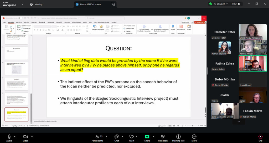 Az esemény nemcsak elméleti betekintést nyújtott a nyelvi variáció kutatásába, hanem lehetőséget adott arra is, hogy a résztvevők kérdéseket tegyenek fel, vitában fejtsék ki álláspontjukat, és aktívan bekapcsolódjanak a tudományos diskurzusba. A rendezvény értékes szakmai élményt jelentett mindazok számára, akik a nyelvhasználat sokszínűségét és a nyelvi változás dinamikáját szeretnék mélyebben megérteni.