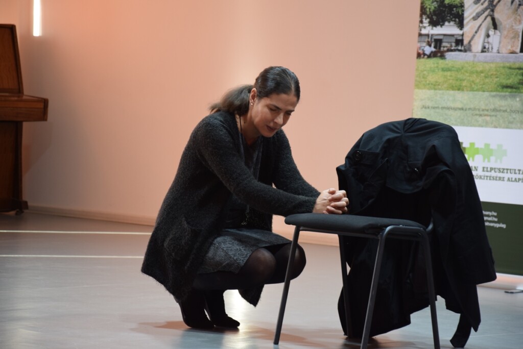 A köszöntőket követően „A nép ellensége” című monodrámát tekinthettük meg Sztankay Orsolya színművész előadásában. A mű Rohr Magdolna, Nagyné Pintér Jolán édesanyjának kálváriáját mutatja be, amely nem egy egyszerű történet. A fiatal lány kilenc évet töltött embertelen körülmények között szovjet táborokban, sokáig azt sem tudta, miért. A koholt vádat csak jóval a hazatérése után, a hatvanas évek vége felé tudta meg. A negyvenperces monológban az ő visszaemlékezéseit hallhatjuk 1945-től, amikor a szovjet katonák először csoportosan megbecstelenítették, majd nem sokkal később koholt vádak alapján elhurcolták.