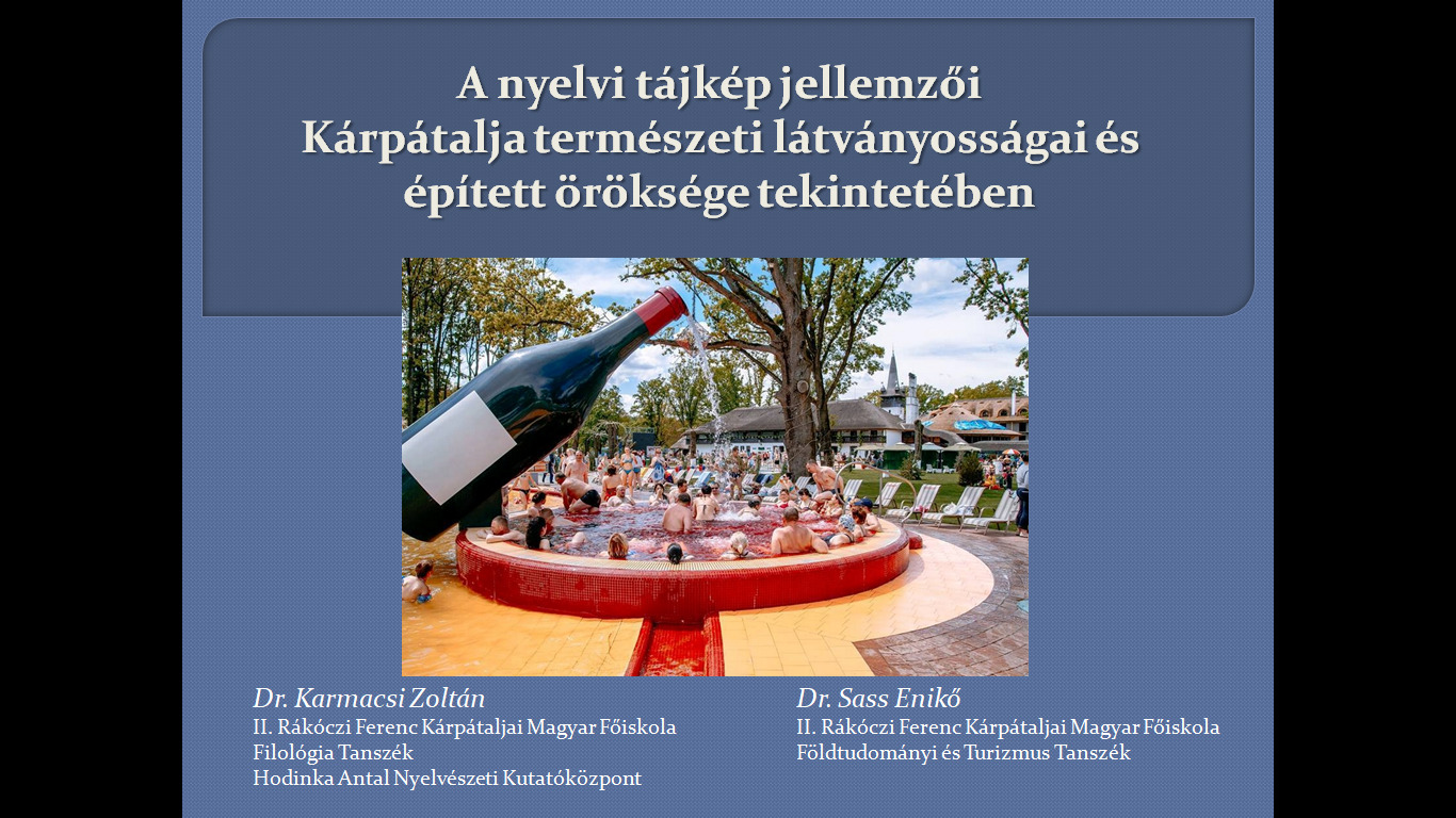 Főiskolánkat Dr. Karmacsi Zoltán, a Filológia Tanszék Magyar Tanszéki Csoportjának docense, illetve Dr. Sass Enikő, a Földtudományi és Turizmus Tanszék docense képviselték, akik előadásukban Kárpátalja nyelvi tájképének jellemzőit mutatták be a terület természeti látványosságai és épített öröksége tekintetében.