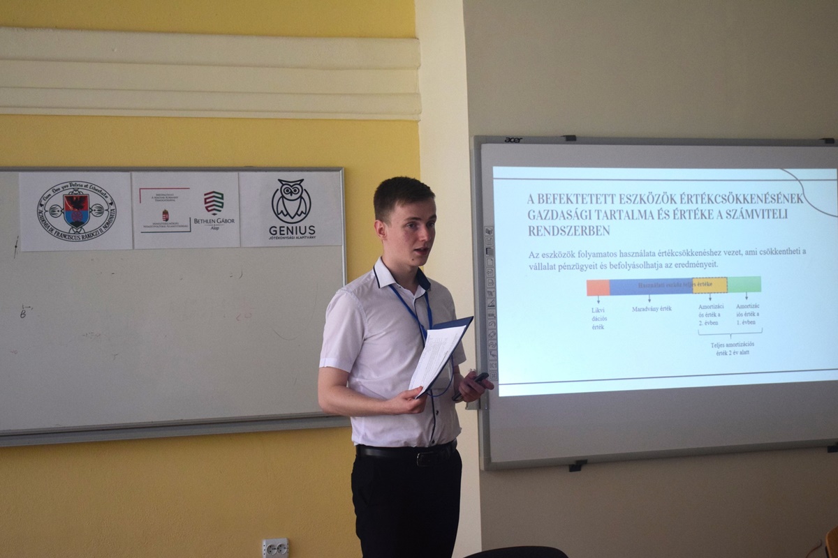 Az előadás témája: Tárgyi eszközök értékcsökkenése a számviteli rendszerben, valamint a gazdasági entitás pénzügyi-gazdasági tevékenységére gyakorolt hatásának elemzése (témavezető: prof. dr. Pojda-Noszik Nina).