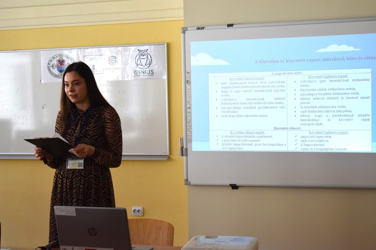 Az előadás témája: A gazdasági entitás exportműveleteinek számvitele és elemzése (témavezető: dr. Makarovics Viktória).