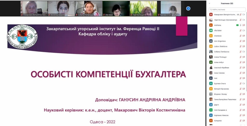 A Könyvelők Nemzetközi Napjának megünneplése keretében a Rákóczi-főiskola Nemzetközi számvitel és Adóügy képzési programjának MSc-hallgatói részt vettek „A szakma kihívásai a fiatalok szemével” című kerekasztalbeszélgetésen, amelyet az Odesszai Nemzeti Politechnikai Egyetem Számvitel, Elemzés és Auditálás Tanszéke szervezett.