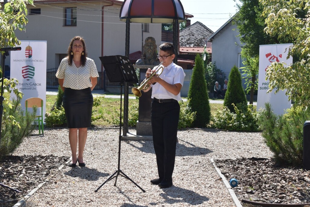 Ezután Magyarország ungvári és beregszászi konzulátusának, a Rákóczi-főiskolának, a Pro Cultura Subcarpathicának, a KMKSZ és a Gravis Mezőkaszony és Térsége Fejlődéséért civil szervezetének képviselői elhelyezték az emlékezés koszorúit István király mellszobránál.