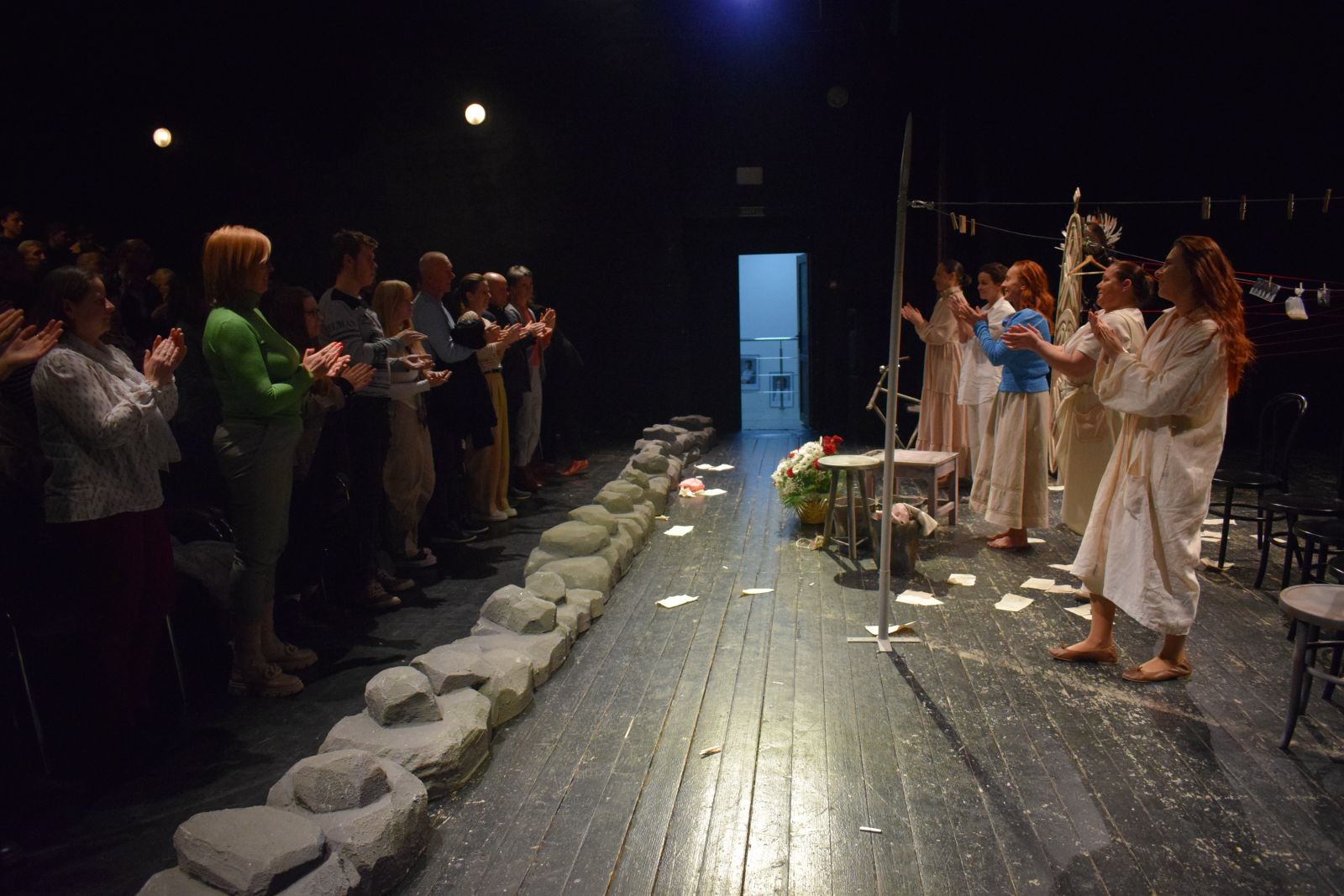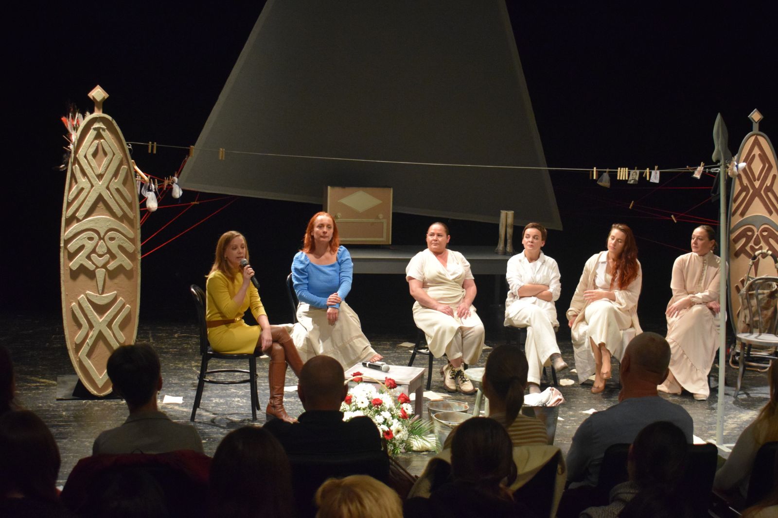 A nagyszerű előadást követően közönségtalálkozóra került sor Sin Edina, a Kárpátaljai Megyei Drámai Színház igazgatója moderálásával és Vass Magdolna, Orosz Melinda, Orosz Ibolya, Gál Natália és Mónus Dóra személyes jelenlétével.