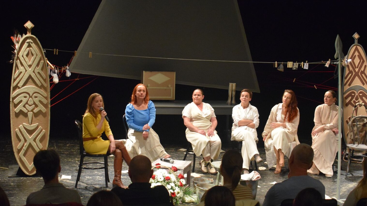 A nagyszerű előadást követően közönségtalálkozóra került sor Sin Edina, a Kárpátaljai Megyei Drámai Színház igazgatója moderálásával és Vass Magdolna, Orosz Melinda, Orosz Ibolya, Gál Natália és Mónus Dóra személyes jelenlétével.