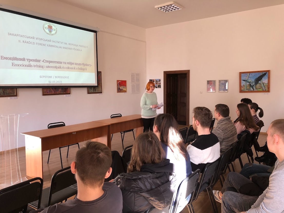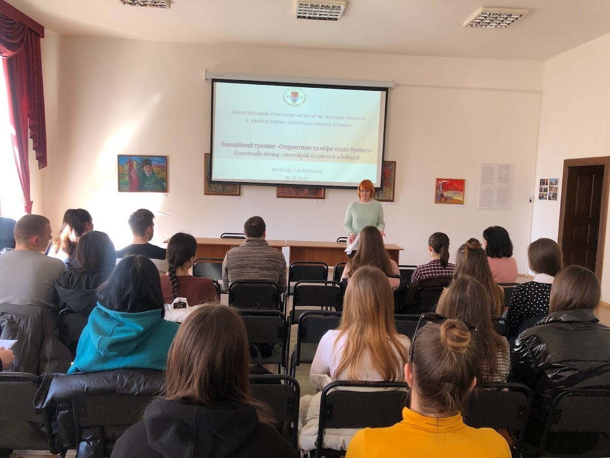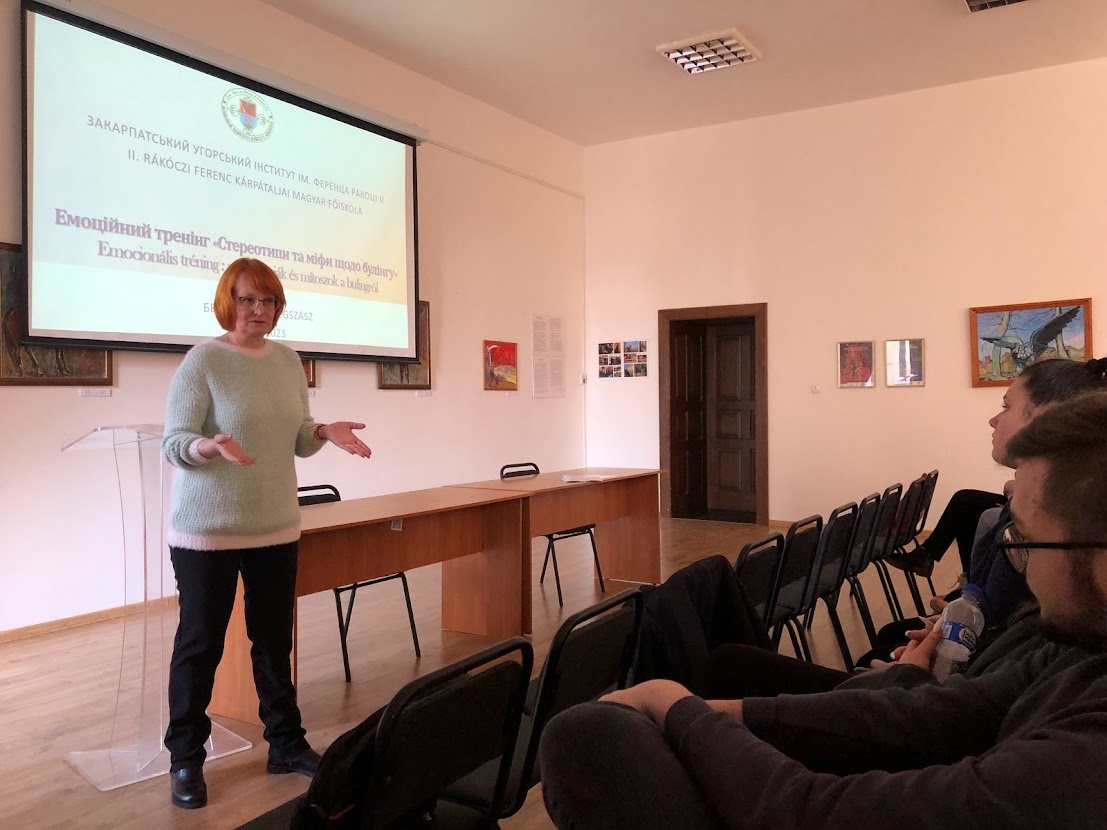 2023. március 2-án a II. Rákóczi Ferenc Kárpátaljai Magyar Főiskola Számvitel és Auditálás Tanszéke a „Sztereotípiák és mítoszok a bullyingról” című érzelmi kompetencia tréning keretén belül egy találkozót szervezett Loker Erikával, a Beregszászi Járási Állami Közigazgatási Hivatal Lakossági Szociális Védelmi Főosztály családtámogatási és szociális ellátási koordinációs osztályának vezetőjével a „Számvitel és adóügy”, valamint „Pénzügyek, bank és biztosítás” BSc és MSc hallgatók számára.