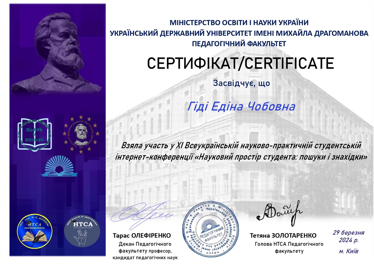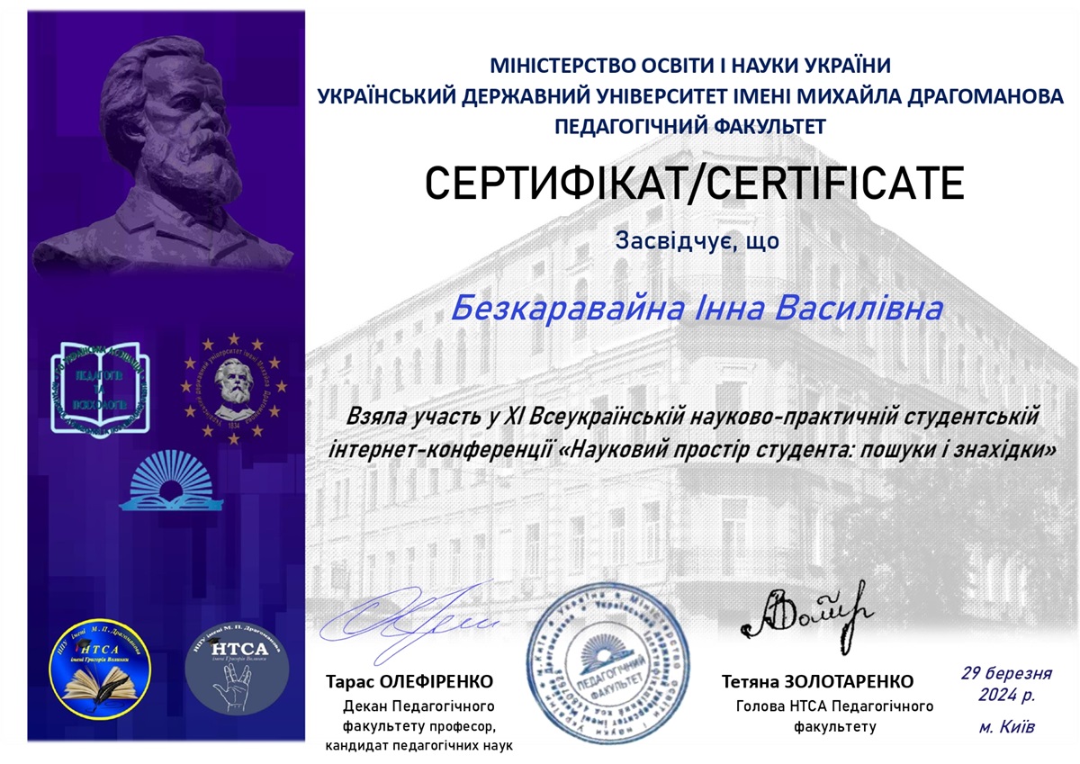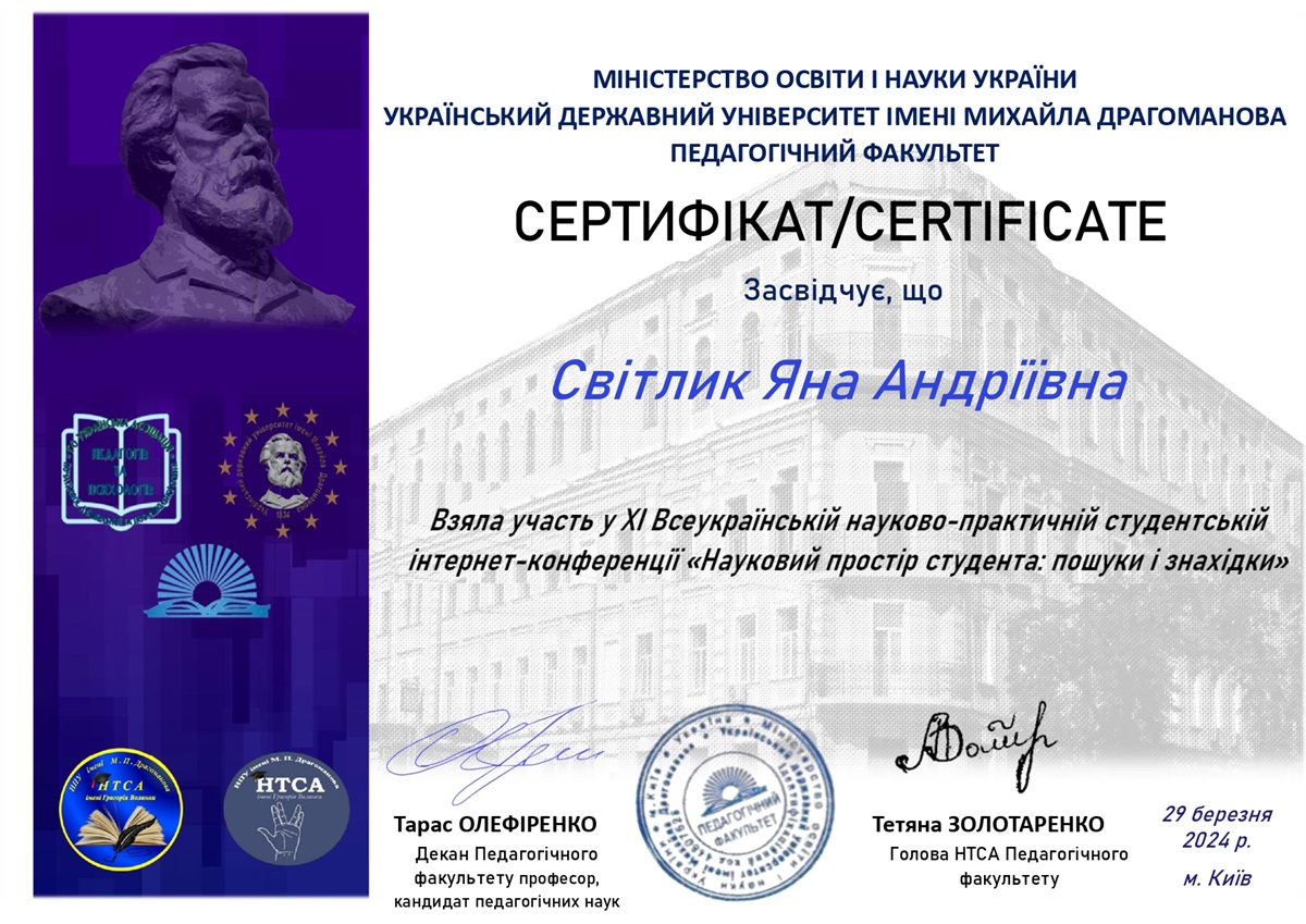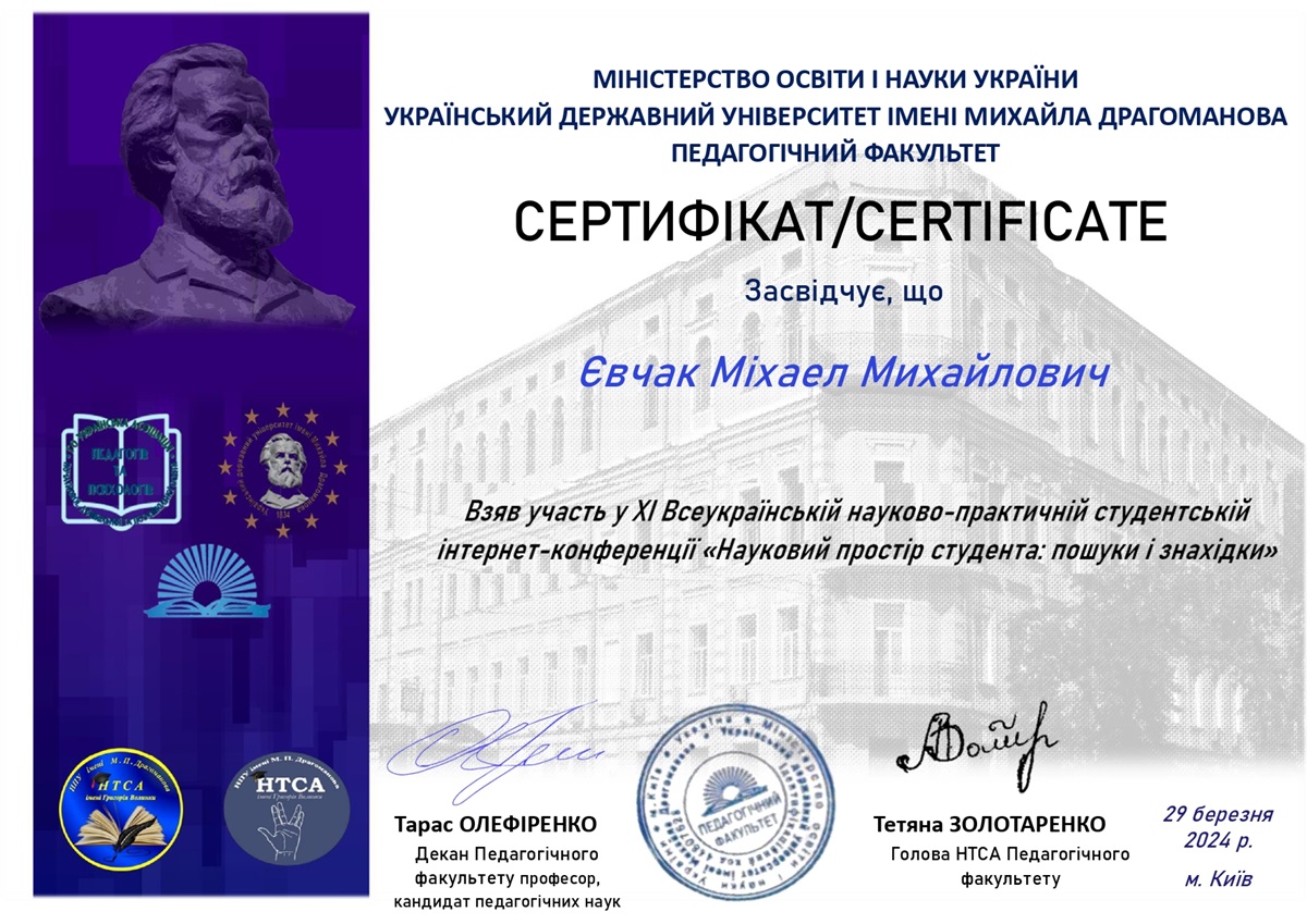 A Drahomanov Ukrán Állami Egyetem fennállásának 190. évfordulója alkalmából március 29-én diákok számára rendezett konferenciát, melynek témája A diák tudományos tere: lehetőségek és perspektívák. A konferenciának intézményünk is társszervezője volt.