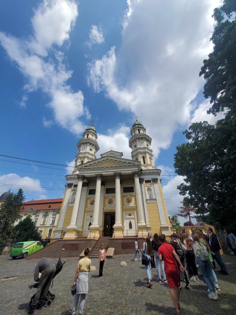 Harmadik célpontunk az Ungvári Görög Katolikus Székesegyház volt, amelyről megtudhattuk, hogy neobarokk stílusban épült. A szovjet időkben az Orosz Ortodox Egyháznak adták át az épületet, és 1991-ben került csak vissza a Görög Katolikus Egyházhoz.