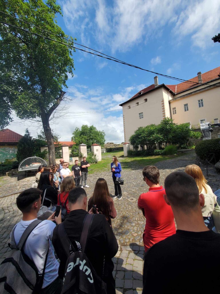 Első turisztikai desztinációnk az Ungvári vár volt. Tóbiás Viktória (III. évf. angol és turizmus szak) és Gerő Boglárka (I. évf. angol és II. évf. turizmus szak) bemutatta nekünk az Ungvári várat és részletes beszédet tartott angolul a régió jelentőségéről és Ungvárról, mint Kárpátalja közigazgatási központjáról.