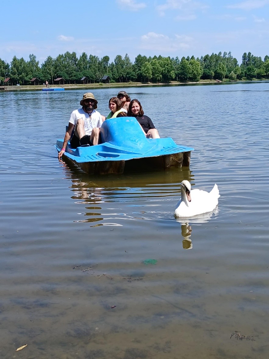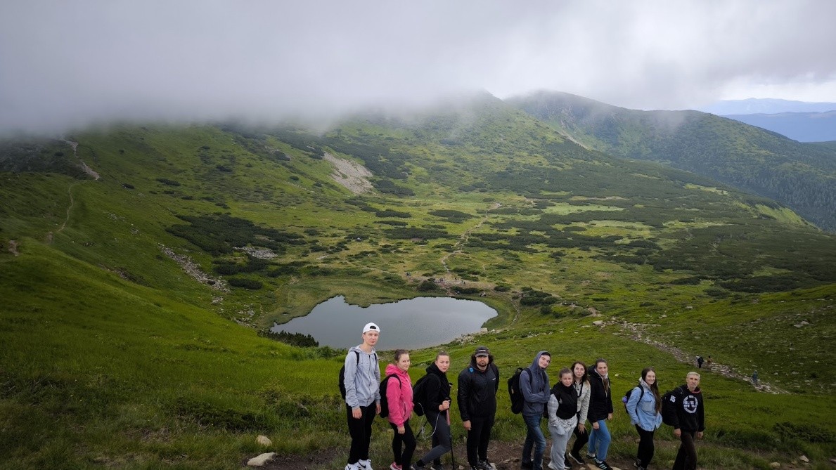 Második héten a terepgyakorlat egy többnapos autóbuszos kirándulással folytatódott. Hallgatóink Beregszászból indulva először Tiszasásvárra utaztak, ahol különböző gyakorlati feladatok segítségével megismerkedtek a geofizikai állomás működésével, majd hidrológiai vizsgálatokat végeztek a Tiszán. Ezt követően Sajánban egész napos programként feltérképezték a Siloám-tó medrét, és GPS-es méréseket végeztek a tó környékén. Aztán ellátogattak az Aknaszlatinai-sóstavakhoz, kirándulást tettek a Kuzij-patak völgyébe (ami nemcsak azért emlékezetes mindannyiuk számára, mert láthatták a térség legősibb kőzeteit, hanem azt is megtapasztalhatták, hogy milyen hirtelen képes a hegyvidéken akkora zápor kerekedni, amely során láb nem marad szárazon), majd kis pihenőt tartottak Európa földrajzi közepén. Persze a túrák sem maradhattak ki: az esős időjárás ellenére látogatást tettek a Bukovel melletti Örök fiatalság tavához, valamint egy hosszabb gyalogtúra keretein belül Vorohta irányából a Spici-csúcsot (1863 m) vették célba, természetföldrajzi megfigyeléseket végezve a Csornohorán.