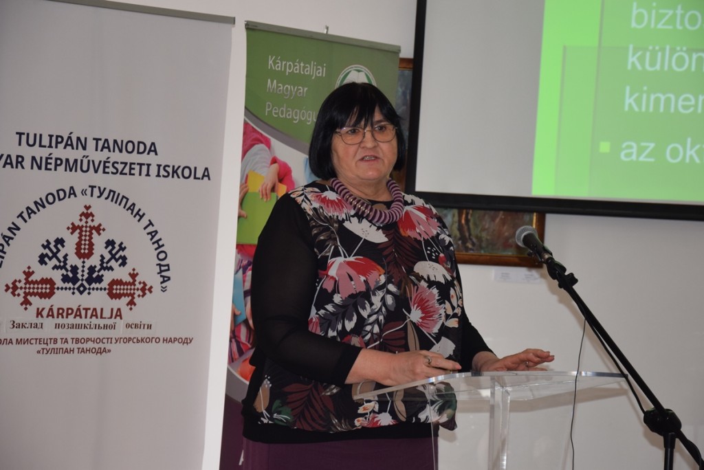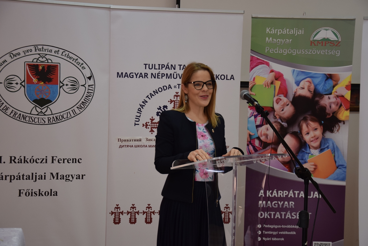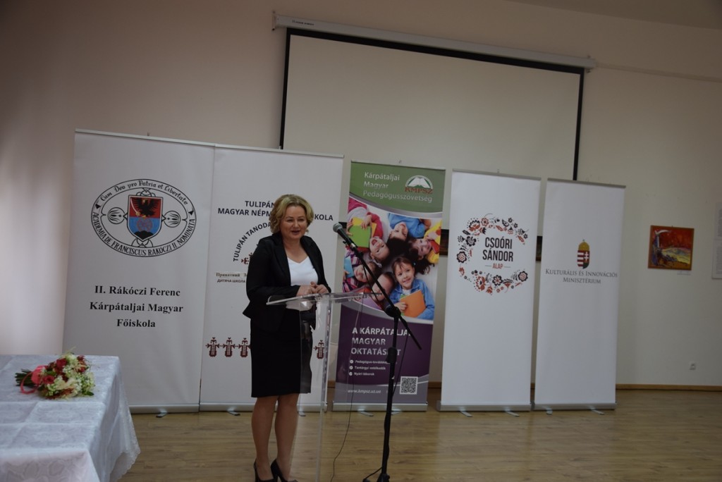 A továbbiakban Orosz Ildikó, a Tulipán Tanodát alapító és támogató II. Rákóczi Ferenc Kárpátaljai Magyar Főiskola elnökasszonya köszöntötte a jelenlévőket és tartotta meg Anyanyelvi oktatás Kárpátalján című előadását. Ebben a beiskolázási programokra, az új kihívásra adható válaszokra, ennek elemeire hívta fel a figyelmet, kiemelve, hogy a Rákóczi-főiskola motorja és húzó ereje a magyar nyelvű beiskolázásnak, azonban a képzések bővítése sem elhanyagolható. Ezek egyik lehetősége az iskolán kívüli programok megléte, úgymint a Tulipán Tanoda hálózata, amely 75 településen 80 oktató segítségével 2342 gyermeket foglalkoztat, vagy a KMPSZ és a „GENIUS” Jótékonysági Alapítvány által szervezett tehetséggondozó hétvégék, szakkörök, nyári táborok.