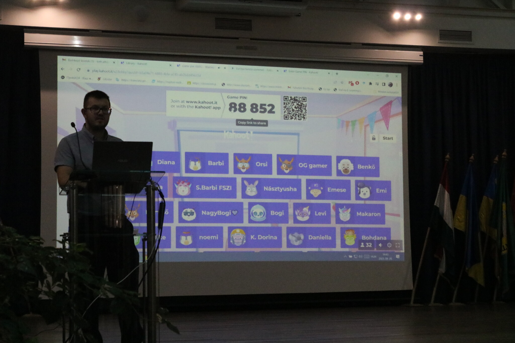 A kvíz után Fodor Gyula rektorhelyettes köszöntötte a jelenlévőket, majd a program Horkay Sámuel, idegenvezető rendkívül érdekes és informatív előadásával folytatódott, amelynek témája és címe az Idegenvezetői tapasztalatok Kárpátalján volt. Az előadás során a hallgatók nem csupán szórakoztató és hasznos idegenvezetői tapasztalatokat hallhattak, hanem betekintést nyerhettek abba, hogy milyen gazdag történelemmel és kulturális örökséggel rendelkezik ez a régió.