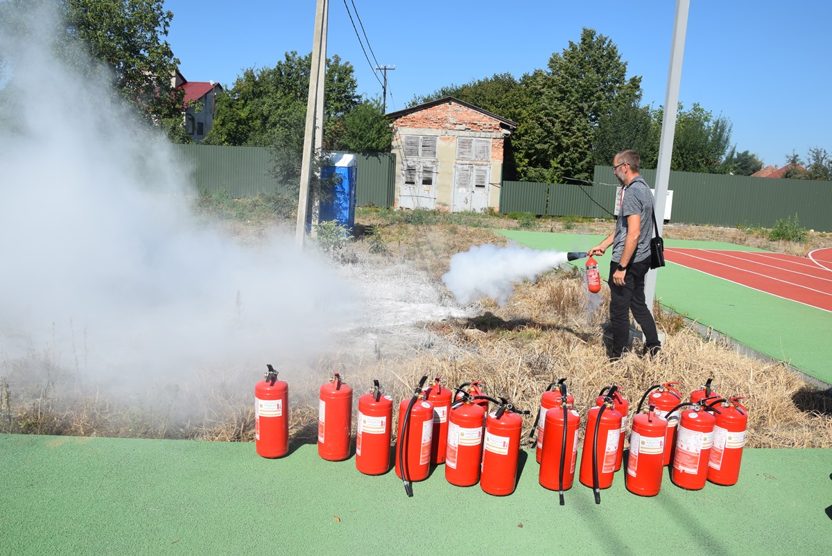 A szakképzési intézet oktatói, személyzete, valamint főiskolánk személyzete Csizmár Iván, a Rákóczi-főiskola rektorhelyettesének és Vaszil Maszljanik munkavédelmi mérnöknek a vezetésével érkeztek a helyszínre. A jelenlévőknek Koszty Jurij, Ukrajna Állami Rendkívüli Helyzetek Kárpátaljai Megyei Főigazgatóságának Beregszászi Kerületi Főosztálya rendkívüli helyzetek megelőzésével foglalkozó osztályának helyettes vezetője, a polgárvédelmi szolgálat alezredese tartott előadást a tűzbiztonsági szabályokról, valamint a poroltó készülékek helyes használatáról.
