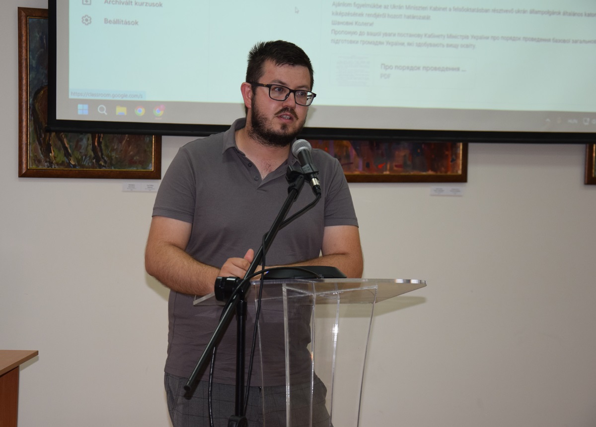 Következő napirendi pontként Moca Andrij jogász a felsőoktatásban részt vevő ukrán állampolgárok általános katonai kiképzésének rendjéről tájékoztatta a jelenlévőket.