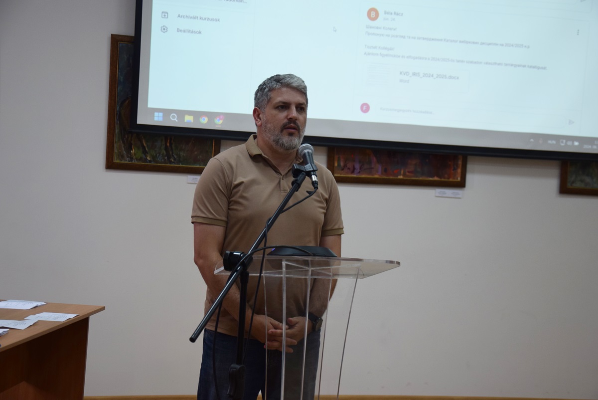 Ezt követően a tanács tagjai Rácz Béla rektorhelyettes vezetésével aktualizálták és jóváhagyták a különböző szabályzatokat, majd elfogadták a 2024–2025-ös tanév szabadon választható tantárgyainak listáját.
