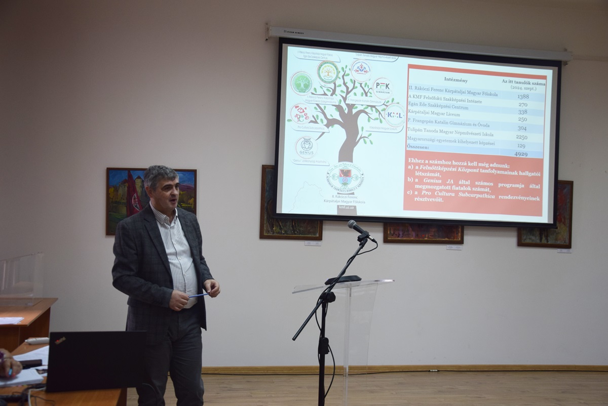 Az ülés utolsó szakaszában Fodor Gyula a II. Rákóczi Ferenc Kárpátaljai Magyar Főiskola oktató-kutató munkatársainak továbbképzéséről és szakmai előmeneteléről tájékoztatta a jelenlévőket. Kifejtette, hogy 7 tanszék képviseletében 34 kolléga vett részt továbbképzésen és mobilitási programokban, majd jóváhagyták a tanszékek által előterjesztett szakmai-módszertani és tudományos kiadványokat.