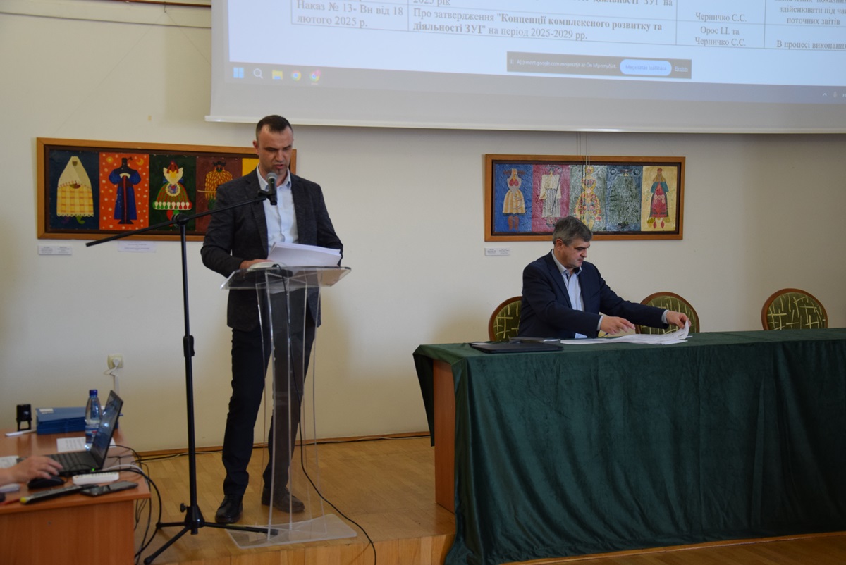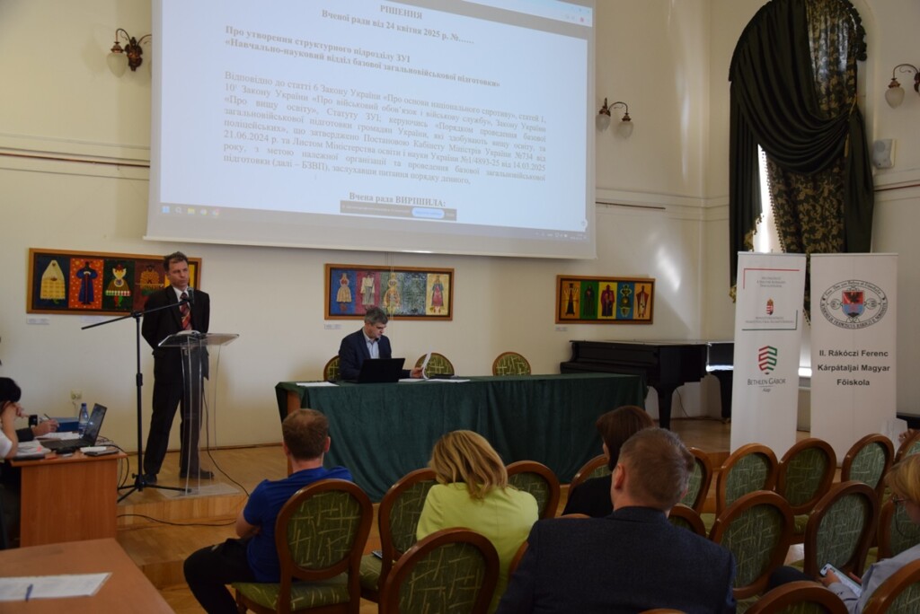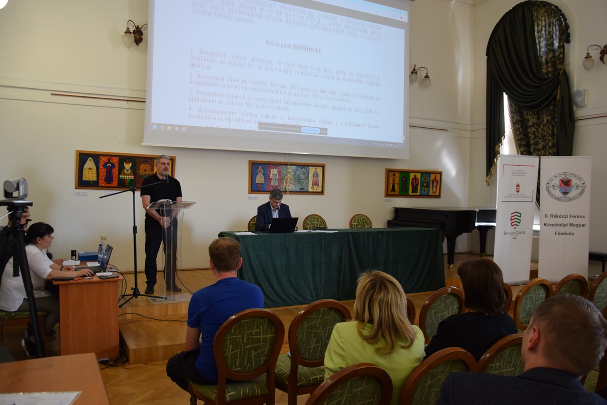 Következő napirendi pontként a tanács tagjai Rácz Béla irányításával jóváhagyták a 2025–2026-os tanévre meghirdetett képzési programok, specializációk és képesítések ukrán, angol és magyar megnevezéseit.