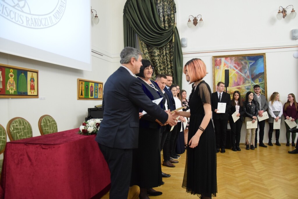 А tanulmányi eredményekért elismerő oklevélben részesültek a következő hallgatók: Elek Irén, az alapképzési program II. évfolyamos, Tanító szakos hallgatója, Markó Boglárka, az alapképzési program II. évfolyamos, Óvodapedagógia szakos hallgatója, Balogh Dániel, a mesterképzési program II. évfolyamos, Történelem és régészet szakos hallgatója, Orosz Melánia, az alapképzési program III. évfolyamos, Középfokú oktatás, Történelem szakos hallgatója, Peres Nikolett, az alapképzési program III. évfolyamos, Középfokú oktatás, Földrajz szakos hallgatója, Farkas Tiffány-Anasztázia, az alapképzési program II. évfolyamos, Turizmus szakos hallgatója, Hadar Bianka, a mesterképzési program II. évfolyamos, Biológia szakos hallgatója. Továbbá a tanulmányi eredményekért elismerő oklevélben részesült: Sass Patrik Zsolt, az alapképzési program III. évfolyamos, Középfokú oktatás, Biológia szakos hallgatója, Sütő Regina, az alapképzési program III. évfolyamos, Középfokú oktatás, Kémia szakos hallgatója, Bajusz Boglárka, a mesterképzési program II. évfolyamos, Angol nyelv és irodalom szakos hallgatója, Gódi Anasztázia, az alapképzési program IV. évfolyamos, Középfokú oktatás, Nyelv és irodalom (angol) szakos hallgatója, Váradi Krisztián, a mesterképzési program II. évfolyamos, Magyar nyelv és irodalom szakos hallgatója, Orbán Viktória, az alapképzési program IV. évfolyamos, Középfokú oktatás, Nyelv és irodalom (magyar) szakos hallgatója, Szuprunenkó Szofia, a mesterképzési program II. évfolyamos, Ukrán nyelv és irodalom szakos hallgatója, Nemes Irina, az alapképzési program II. évfolyamos, Középfokú oktatás, Nyelv és irodalom (ukrán) szakos hallgatója, Baksa Adrien, a mesterképzési program II. évfolyamos, Középfokú oktatás, Matematika szakos hallgatója, Temető Ádám, az alapképzési program III. évfolyamos, Középfokú oktatás, Matematika szakos hallgatója, Izsák Szilveszter, az alapképzési program IV. évfolyamos, Számvitel és adóügy szakos hallgatója.