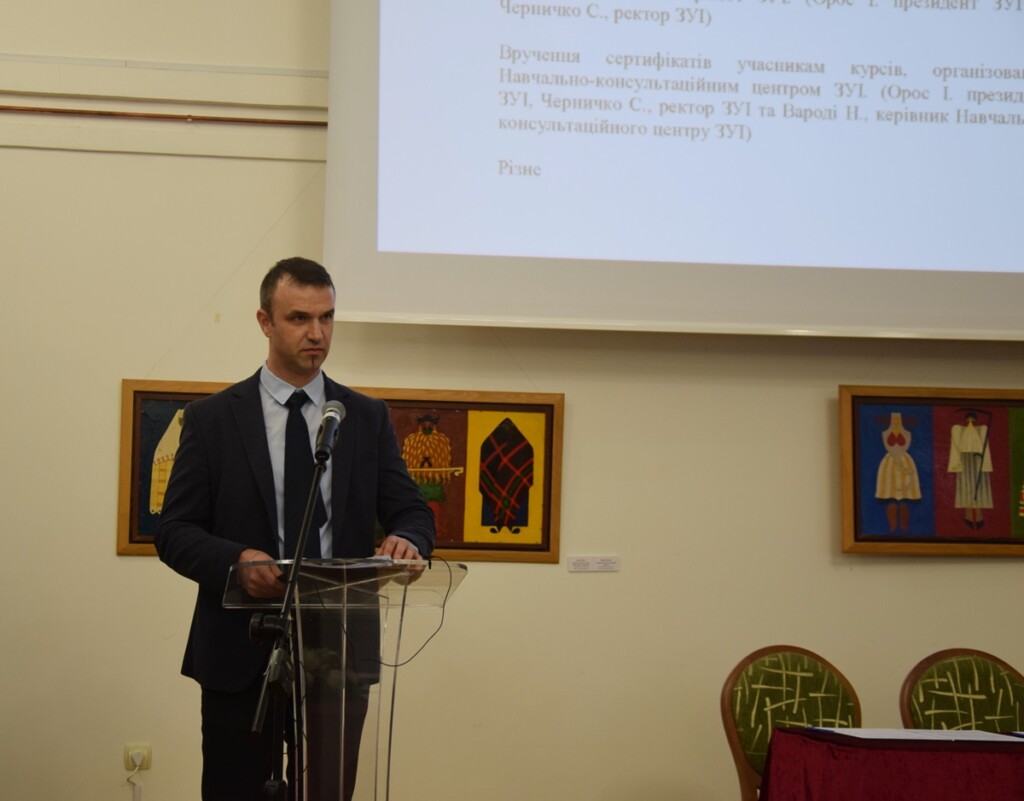 Az ünnepi tanácsülés utolsó szakaszában a főiskola Felnőttképzési Központja által működtetett tanfolyamok végzőseinek ünnepélyes tanúsítvány átadójára került sor. A jelenlévőket Váradi Natália, a Felnőttképzési Központ vezetője köszöntötte. Kiemelte, hogy a tanfolyamokra szeptember-október folyamán lehetett jelentkezni. Ez idő alatt 116 hallgató adta be jelentkezését angol, német, magyar és ukrán nyelvtanfolyamra, akik közül 36-an tettek sikeres vizsgák, és kaphatták meg okleveleiket.