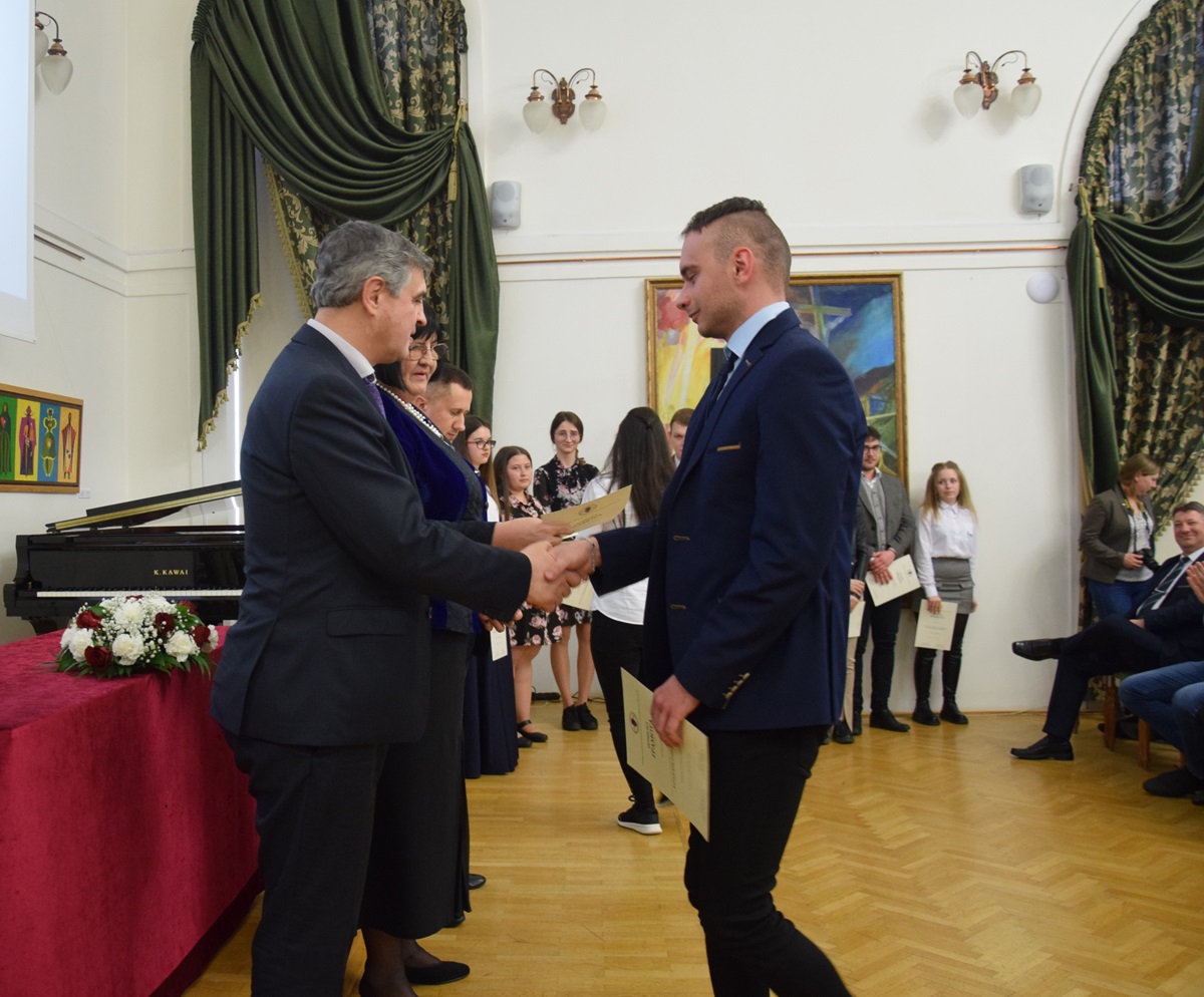 А tanulmányi eredményekért elismerő oklevélben részesültek a következő hallgatók: Elek Irén, az alapképzési program II. évfolyamos, Tanító szakos hallgatója, Markó Boglárka, az alapképzési program II. évfolyamos, Óvodapedagógia szakos hallgatója, Balogh Dániel, a mesterképzési program II. évfolyamos, Történelem és régészet szakos hallgatója, Orosz Melánia, az alapképzési program III. évfolyamos, Középfokú oktatás, Történelem szakos hallgatója, Peres Nikolett, az alapképzési program III. évfolyamos, Középfokú oktatás, Földrajz szakos hallgatója, Farkas Tiffány-Anasztázia, az alapképzési program II. évfolyamos, Turizmus szakos hallgatója, Hadar Bianka, a mesterképzési program II. évfolyamos, Biológia szakos hallgatója. Továbbá a tanulmányi eredményekért elismerő oklevélben részesült: Sass Patrik Zsolt, az alapképzési program III. évfolyamos, Középfokú oktatás, Biológia szakos hallgatója, Sütő Regina, az alapképzési program III. évfolyamos, Középfokú oktatás, Kémia szakos hallgatója, Bajusz Boglárka, a mesterképzési program II. évfolyamos, Angol nyelv és irodalom szakos hallgatója, Gódi Anasztázia, az alapképzési program IV. évfolyamos, Középfokú oktatás, Nyelv és irodalom (angol) szakos hallgatója, Váradi Krisztián, a mesterképzési program II. évfolyamos, Magyar nyelv és irodalom szakos hallgatója, Orbán Viktória, az alapképzési program IV. évfolyamos, Középfokú oktatás, Nyelv és irodalom (magyar) szakos hallgatója, Szuprunenkó Szofia, a mesterképzési program II. évfolyamos, Ukrán nyelv és irodalom szakos hallgatója, Nemes Irina, az alapképzési program II. évfolyamos, Középfokú oktatás, Nyelv és irodalom (ukrán) szakos hallgatója, Baksa Adrien, a mesterképzési program II. évfolyamos, Középfokú oktatás, Matematika szakos hallgatója, Temető Ádám, az alapképzési program III. évfolyamos, Középfokú oktatás, Matematika szakos hallgatója, Izsák Szilveszter, az alapképzési program IV. évfolyamos, Számvitel és adóügy szakos hallgatója.