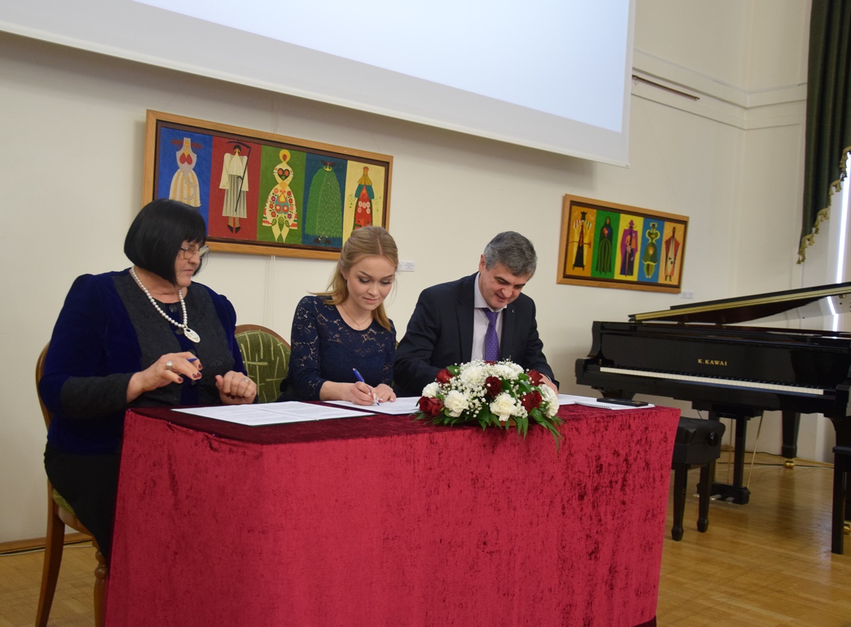 Ezt követően Orosz Ildikó, a Rákóczi-főiskola elnöke, Csernicskó István, a II. RF KMF rektora és Farkas Bettina, a főiskola Hallgatói Önkormányzatának elnöke a HÖK tevékenységi feltételeinek megfelelő biztosításáról szóló szerződést írtak alá. A szerződéskötést követően a II. RF KMF kórusának előadásában a 42. zsoltár feldolgozását hallhattuk.