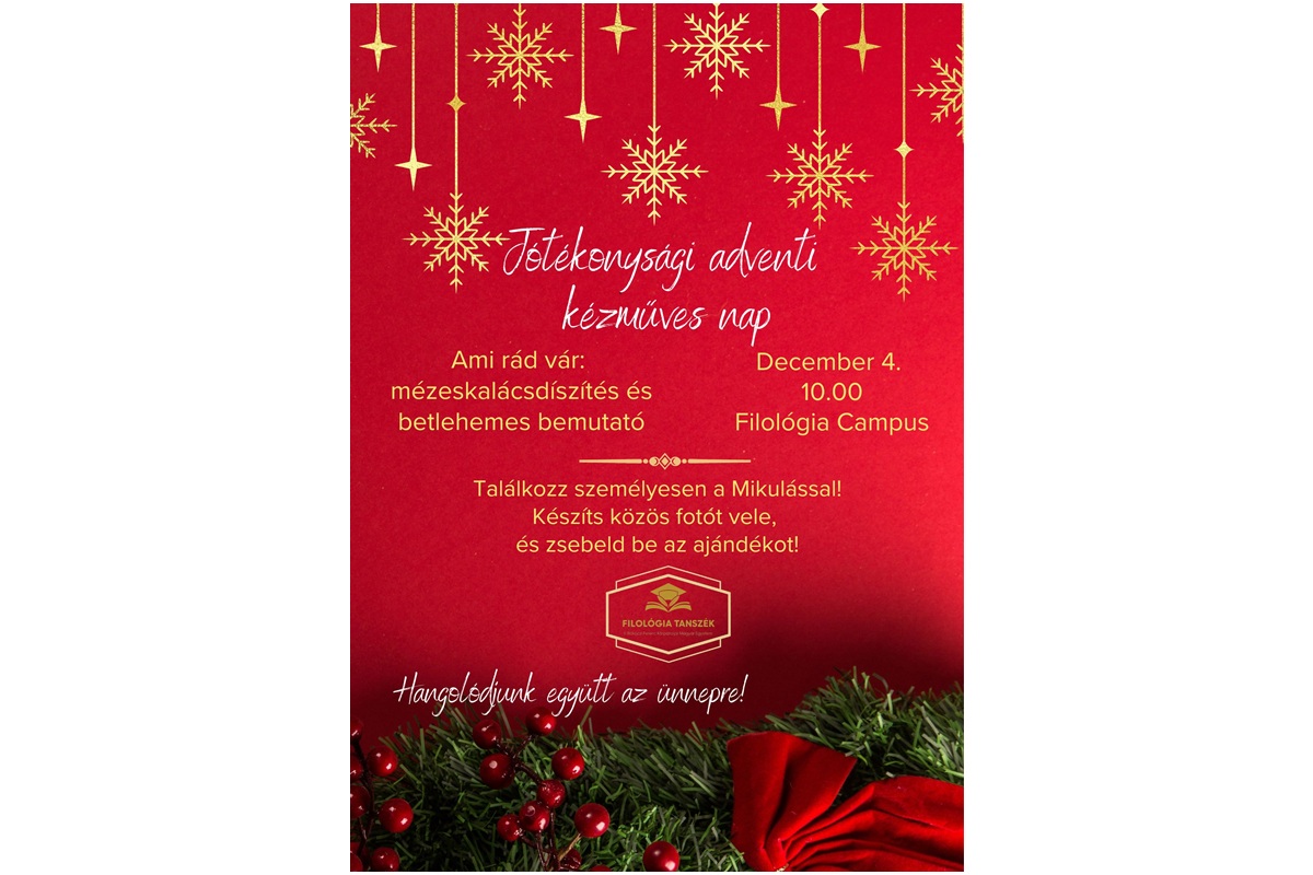 A december 4-ére meghirdetett esemény változatos programkínálattal várja az egyetem közösségét. A karácsonyi szokáskör felelevenítéseként betlehemes játékra kerül sor, melynek keretében a résztvevők egy autentikus salánki betlehemes előadást tekinthetnek meg. Az ünnepi atmoszférát a frissen sült mézes sütemények illata teszi teljessé, emellett lehetőség nyílik mézeskalács-díszítésre is. A kézműves asztalnál a jelenlévők különféle ünnepi díszeket készíthetnek.