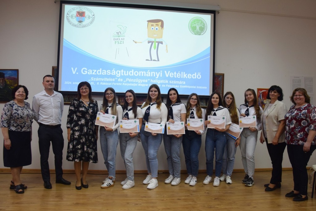 2024. szeptember 25-én rendezték meg az V. Gazdaságtudományi Vetélkedőt a II. Rákóczi Ferenc Kárpátaljai Magyar Főiskola számvitel és pénzügyes II–III. évfolyamos BSc-hallgatói és a II. Rákóczi Ferenc Kárpátaljai Magyar Főiskola Felsőfokú Szakképzési Intézetének III–IV. évfolyamos számviteles diákjai között. A Rákóczi-főiskola Számvitel és Auditálás Tanszéke és a Rákóczi-főiskola Felsőfokú Szakképzési Intézetének Számvitel és Adóügy Szakbizottsága immár ötödik alkalommal szervezi meg közösen ezt a rendezvényt. Az idei vetélkedő különleges volt, hiszen a megmérettetésre a Rákóczi-főiskola Felsőfokú Szakképzési Intézete fennállásának 10. évfordulója alkalmából szervezett ünnepség részeként került sor, amely még ünnepélyesebbé és jelentőségteljesebbé tette az eseményt.