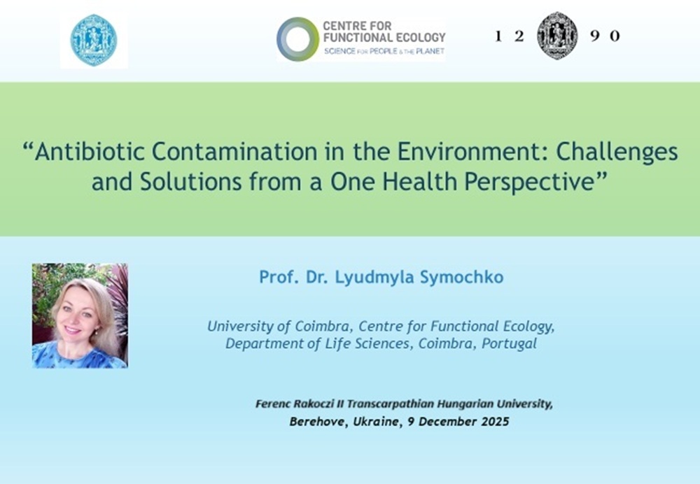 Az előadás címe: Antibiotic Contamination in the Environment: Challenges and Solutions from a One Health Perspective (Antibiotikumszennyezés a környezetben: kihívások és megoldások).