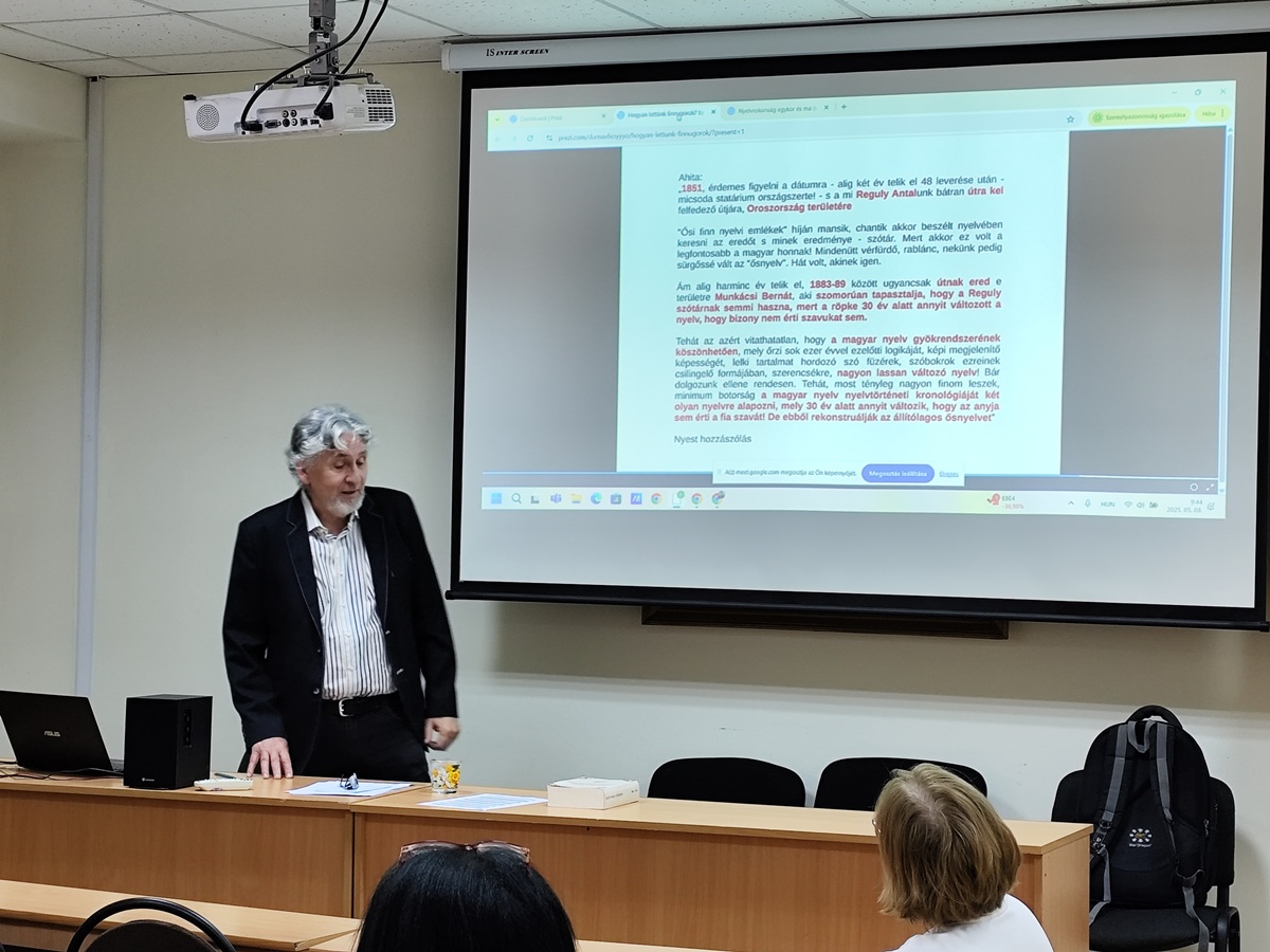 Mind a nyelvrokonság kérdését és a nyelvtörténeti kutatások módszereit érdekfeszítően bemutató előadást, mind a felvidéki magyarság nyelvhasználatára vonatkozó kutatásokról szóló beszámolót nagy érdeklődéssel fogadták a hallgatók.