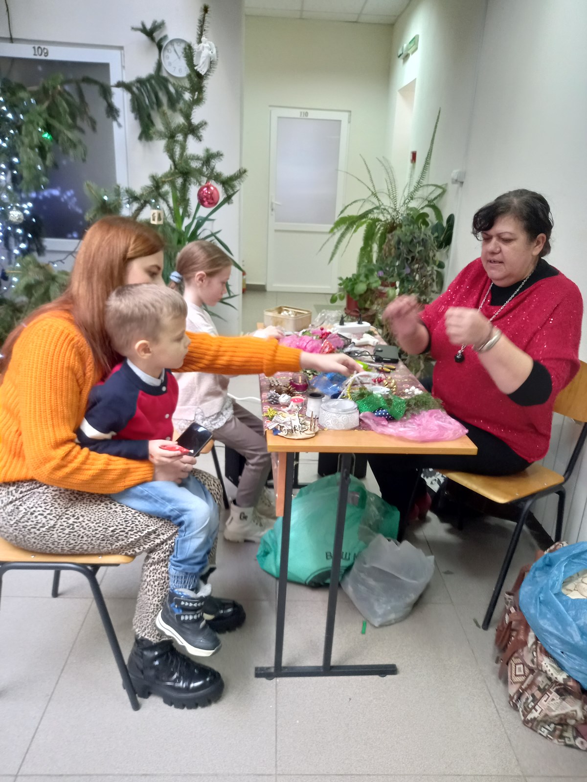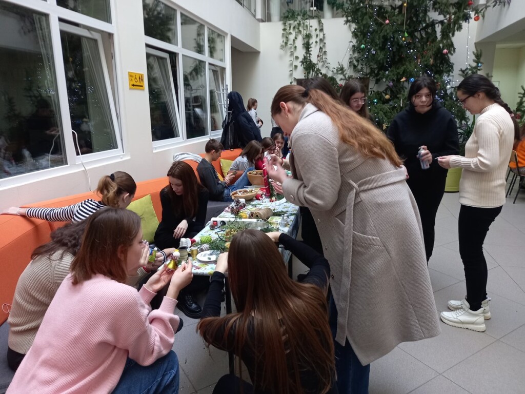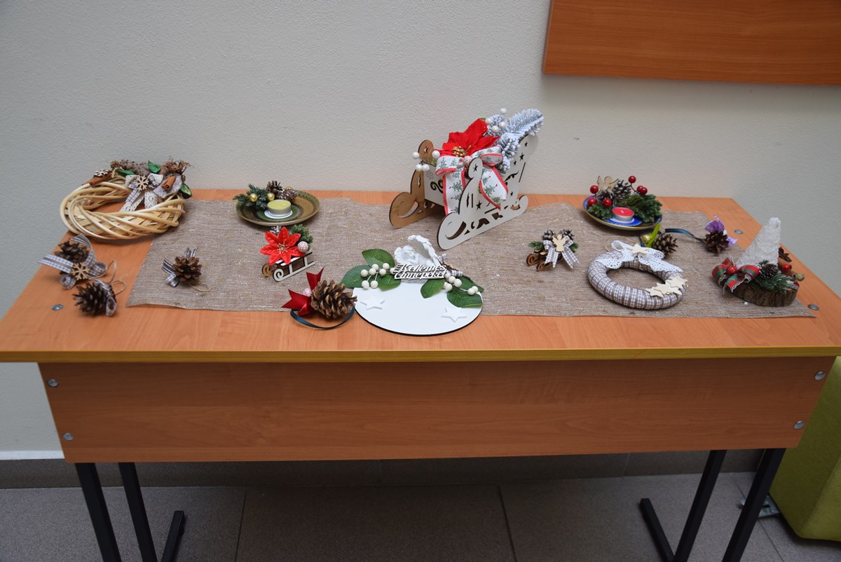 A nap folyamán a vállalkozó szellemű diákokat Kalanics Éva salánki tanárnő, a Tanszék egykori diákja segítette ötletekkel és hasznos tanácsokkal. Hozzáértő irányításával a hallgatók számos, döntő többségében természetes alapanyagú, karácsonyi dísztárgyat készítettek.