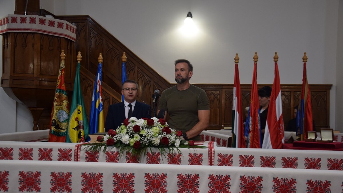 Köszönöm Magyarországnak a segítséget, amit nyújtottak a közösségeknek itt és közel a frontvonalakhoz is. De jelez az órám, és folyamatosan arról jelez, hogy a Katonai Adminisztrációk vezetői arról számolnak be, hogy békés lakosokat lőnek, békés közösségeket érnek támadások. Ukrajnának segítségre van szüksége az egész európai, az egész világközösségtől, az egész civilizált világtól. Ahogy a rektor úr is mondta, nem egyszerű idők, sok magyar elhagyta a szülőföldjét, hogyan lesz, milyen lesz a jövő. Ha katonáink fegyvert kapnak és sikeresen folytathatják az ellentámadást, akkor higgye el, hogy a magyarok többsége vissza fog térni. Én, mint a Katonai Közigazgatás vezetője, tisztában vagyok azzal a felelősséggel, amely engem terhel azért, hogy Kárpátalja minden egyes közössége békében érezhesse magát. Megmentettük Ukrajna gazdaságának egy részét annak köszönhetően, hogy a vállalkozásokat átmentettük Kárpátalján. Több ezer munkahelyet hoztunk létre Kárpátalján, azon belül a Beregszászi járásban is. Ez az a lehetőség, amellyel meg tudjuk őrizni a közösségünket, hiszen az embernek, ha van munkája, van háza, van bevétele, biztonságban érzi magát, akkor megmarad a szülőföldjén. És magyar partnereinknek köszönhetően van segítségünk az oktatásban is. Ezek a gyerekek, ők a mi jövőnk. És ezért óvnunk kell őket. Meg kell teremteni minden feltételt ahhoz, hogy akik elhagyták Kárpátalját, akár gyerekekkel is, visszatérjenek ide, újra itt éljenek és újra itt tanuljanak. Szeretném önöknek megköszönni, hogy nem hagyták el Ukrajnát, hogy itt maradtak, itt dolgoznak, és itt tanulnak továbbra is. Higgyétek el, van jövőtök Ukrajnában. És mi azon fogunk dolgozni, hogy ez a jövő békés legyen.