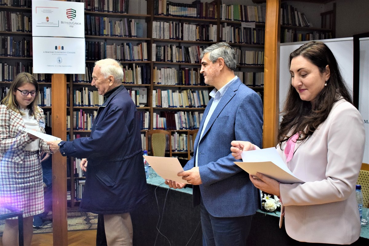 A konferencia zárásán átadásra kerültek az elismerő oklevelek, illetve 2 előadó – Tóth Attila-Linc Annamária (PTE) és Mozgovoj István (II. RF KMF) – a Kárpátaljai Magyar Akadémia Tanács felajánlásból egyenként 500 hrivnya különdíjban részesült, amit Csernicskó István, főiskolánk rektora, a KMAT elnöke adott át.