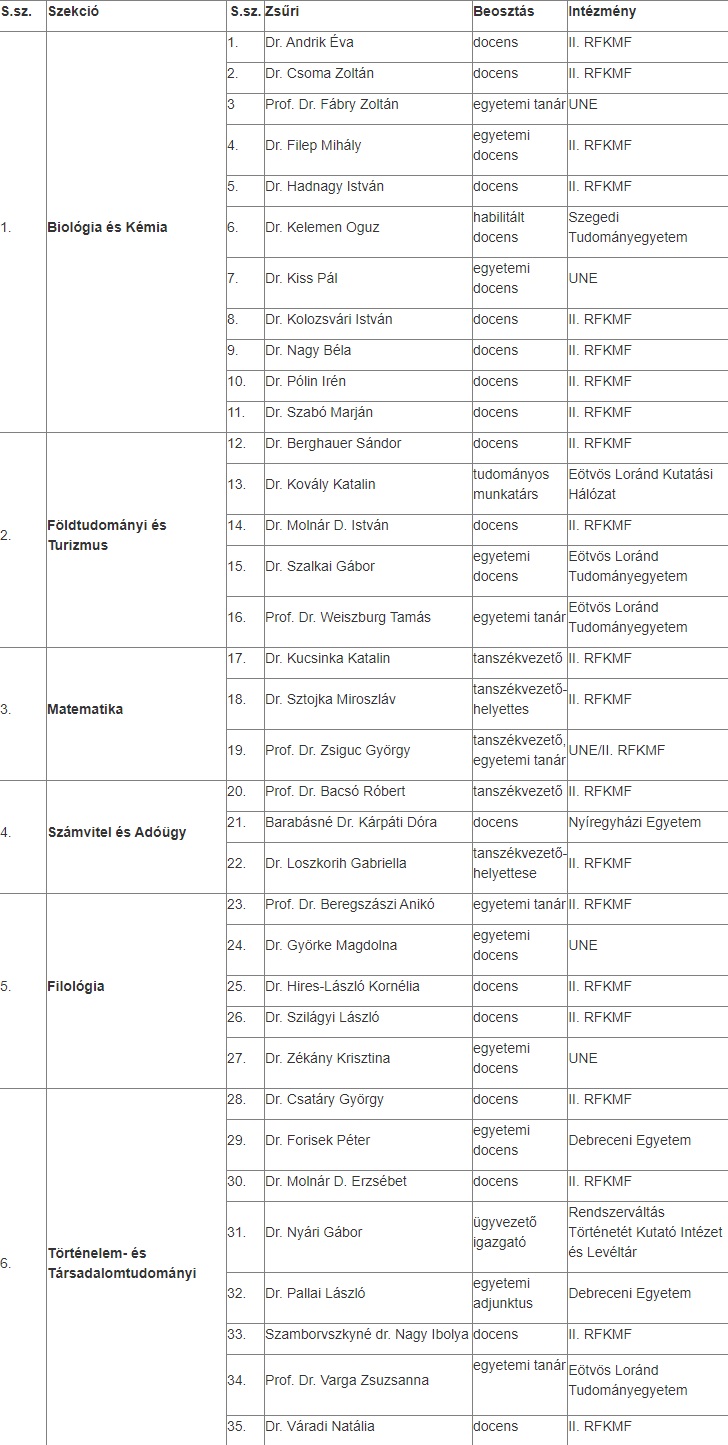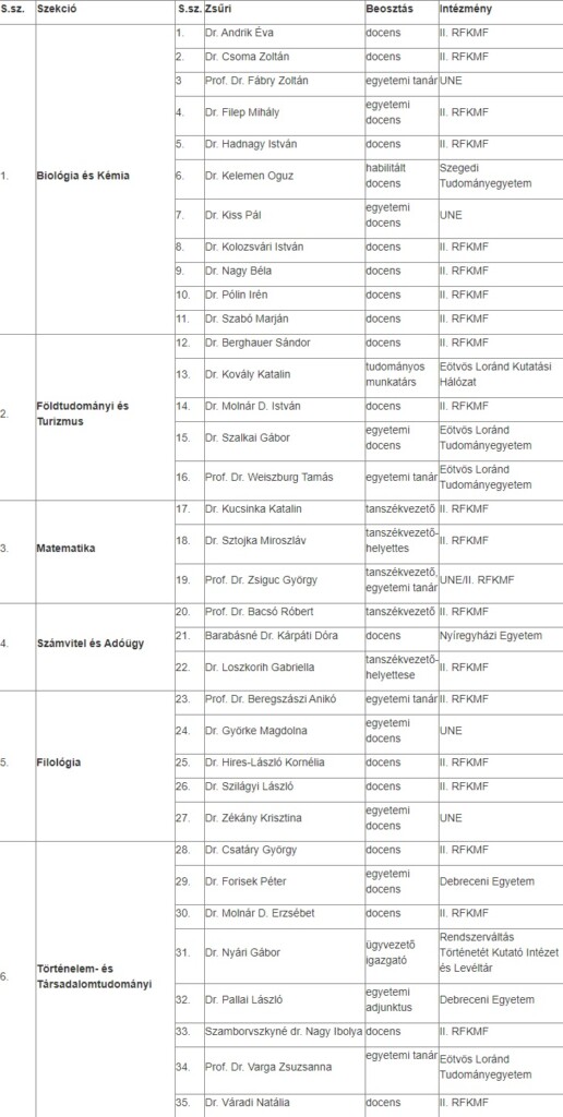 XVII. Kárpátaljai Tudományos Diákköri Konferencia zsűri tagjai: