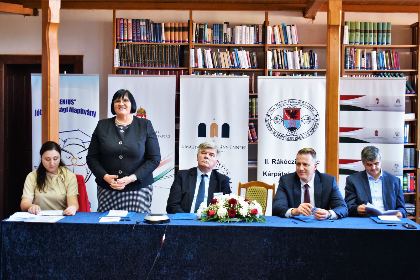 Dr. Orosz Ildikó, a II. Rákóczi Ferenc Kárpátaljai Magyar Főiskola elnöke, Prof. Dr. Csernicskó István, a II. Rákóczi Ferenc Kárpátaljai Magyar Főiskola rektora, Dr. Kórós Attila, Magyarország Ungvári Főkonzulátusának konzulja, Beke Mihály András, Magyarország Beregszászi Konzulátusának első beosztott konzulja, ügyvezető konzul.
