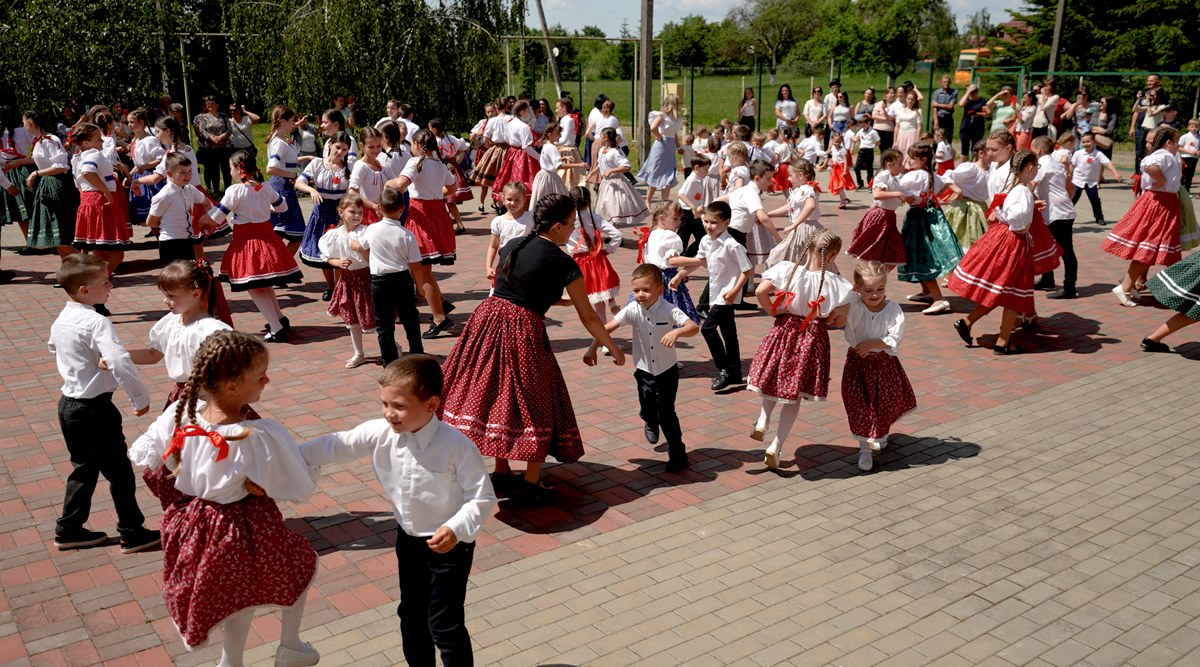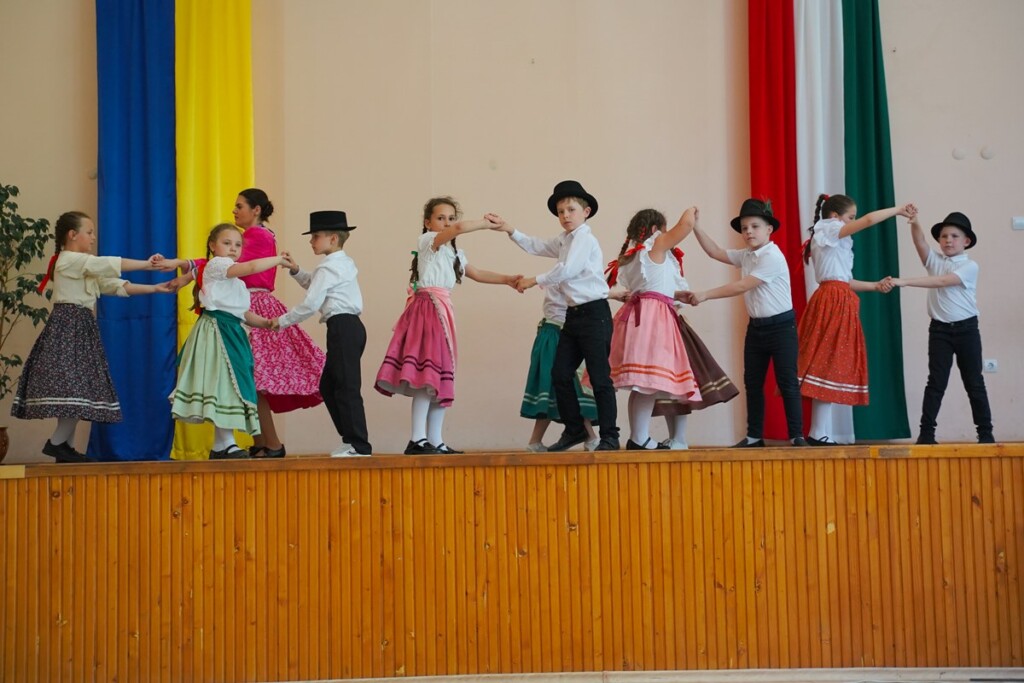 Majd a Tulipán Tanoda Nagyszőlősi 3. Sz.Perényi Zsigmond Középiskolában kihelyezett szakkörének tanulói eltáncolták az összetartozás táncát.