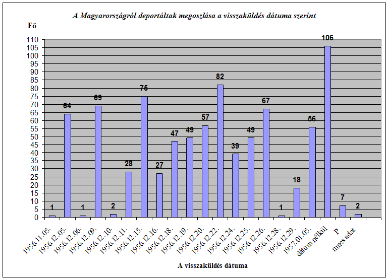 Az alábbi diagram azt mutatja, hogy mely napokon történt és milyen arányban az 1956-os forradalmárok visszaszállítása Magyarországra.