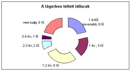 töltött a lágerben, 19%(5 fő) 1 évet, 29 % (8 fő) 1-2 évet, 7 % (2 fő)