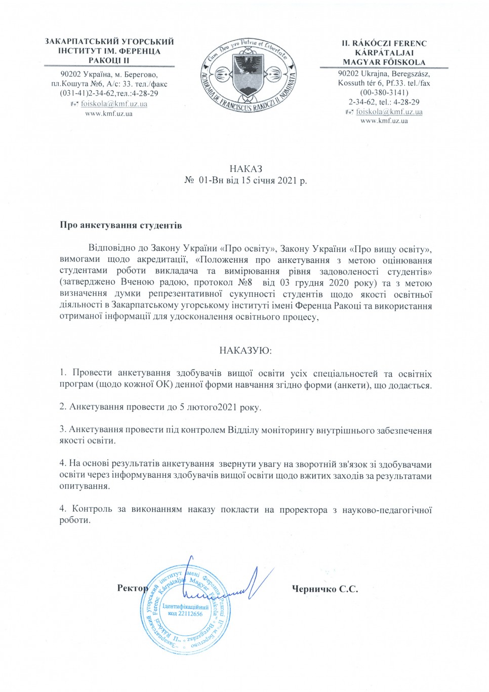 НАКАЗ № 01-Вн від 15.01.2021 р. “Про анкетування студентів”
