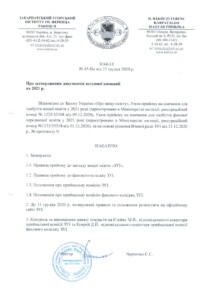 НАКАЗ № 45-Вн від 23.12.2020 р. “Про затвердження документів вступної кампанії на 2021 р.”