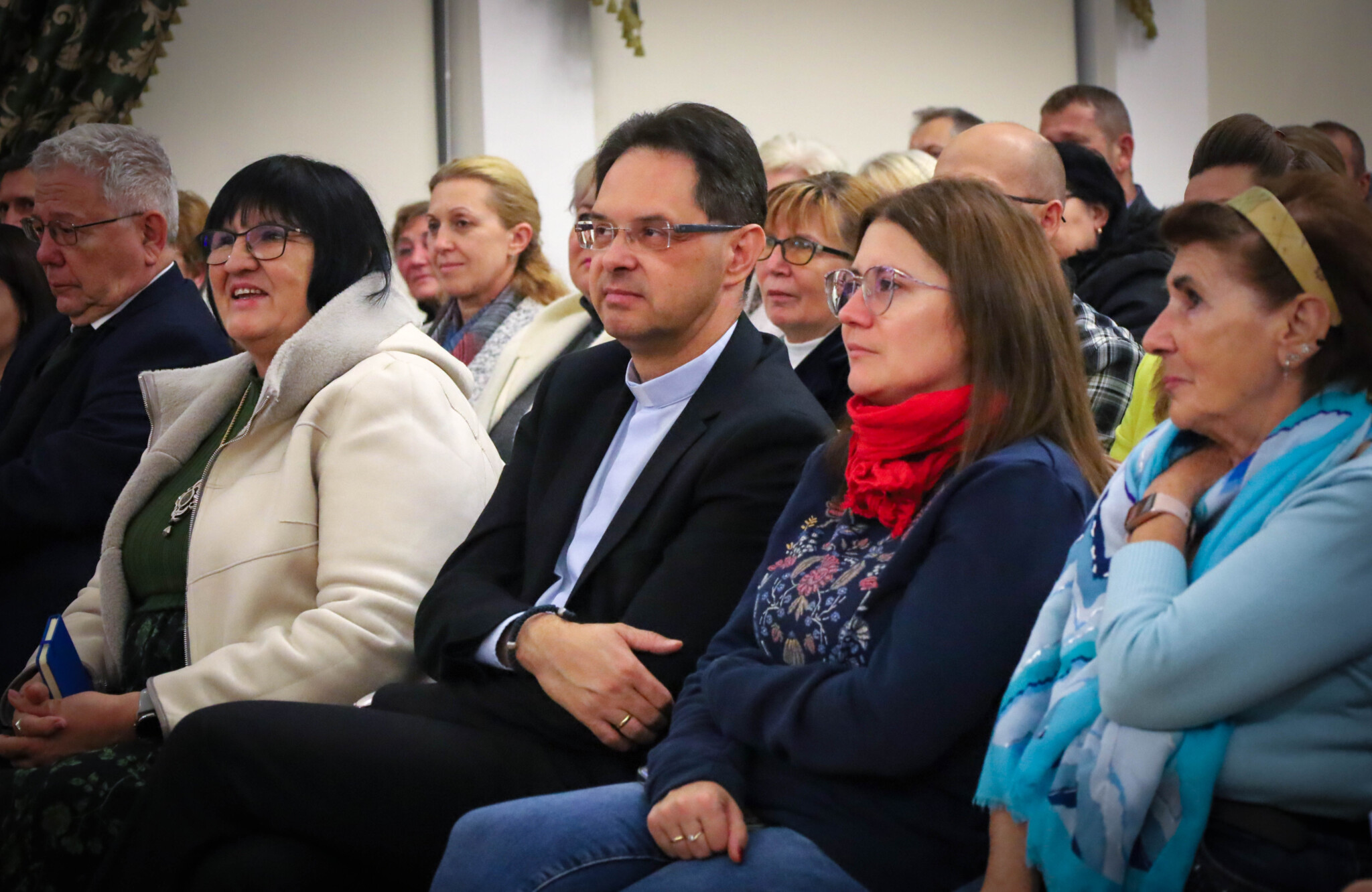 На початку своєї доповіді отець Чаба Бейте назвав себе людиною надії. У своїй лекції він не лише підкреслив важливість збереження надії, а й акцентував увагу на силі єдності родини та спільноти. Духівник, посилаючись на біблійну історію про дванадцятирічного Ісуса, який загубився в Єрусалимі, нагадав про незламність духу: так само, як Йосип і Марія не припинили пошуків свого сина, так і ми не повинні здаватися у важкі часи.,
