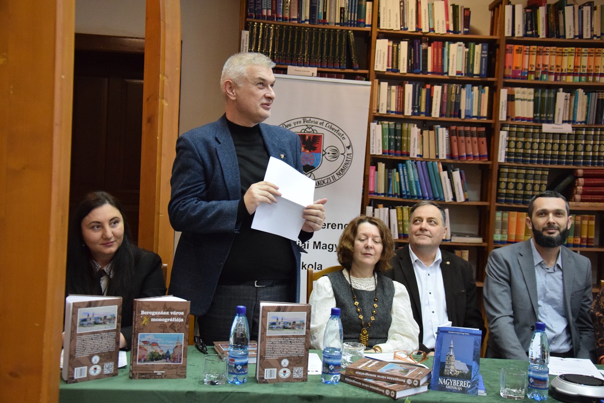 Після цього відбулася презентація книги «Монографія міста Берегове», про яку детальніше розповіли почесний професор Дебреценського університету д-р Янош Барта та викладач Ужгородського національного університету Василь Зубанич. Збірник побачив світ за редакцією доцентів кафедри історії та суспільних наук Ібої Надь Самборовскі та Єлізавети Молнар Д. Авторами публікації є викладачі кафедри історії та суспільних дисциплін: доцент кафедри географії та туризму Степан Молнар Д., Адальберт Рац, Барнабаш Кейс, Юрій Чотарі, Юрій Данч, Федір Молнар, Василь Браун, Імре Сакал, Ерік Марусич, Єлізавета Молнар Д., Наталія Вароді, Ібоя Надь Самборовскі. У книзі представлено історію Берегова від доісторичних часів через призму подій 19 століття до сучасності, його розвиток, культуру, адміністративний устрій, повсякденне життя.