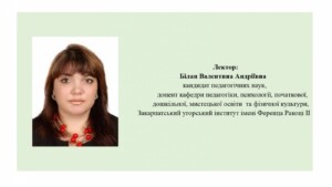 Гостьова лекція, проведена Білан Валентиною Андріївною, кандидатом педагогічних наук, доцентом кафедри педагогіки, психології, початкової, дошкільної освіти та управління закладами освіти Закарпатського угорського університету імені Ференца Ракоці II, відбулася в рамках програми внутрішньої академічної мобільності для здобувачів вищої освіти першого (бакалаврського) рівня спеціальності А2 «Дошкільна освіта» Уманського державного педагогічного університету імені Павла Тичини.