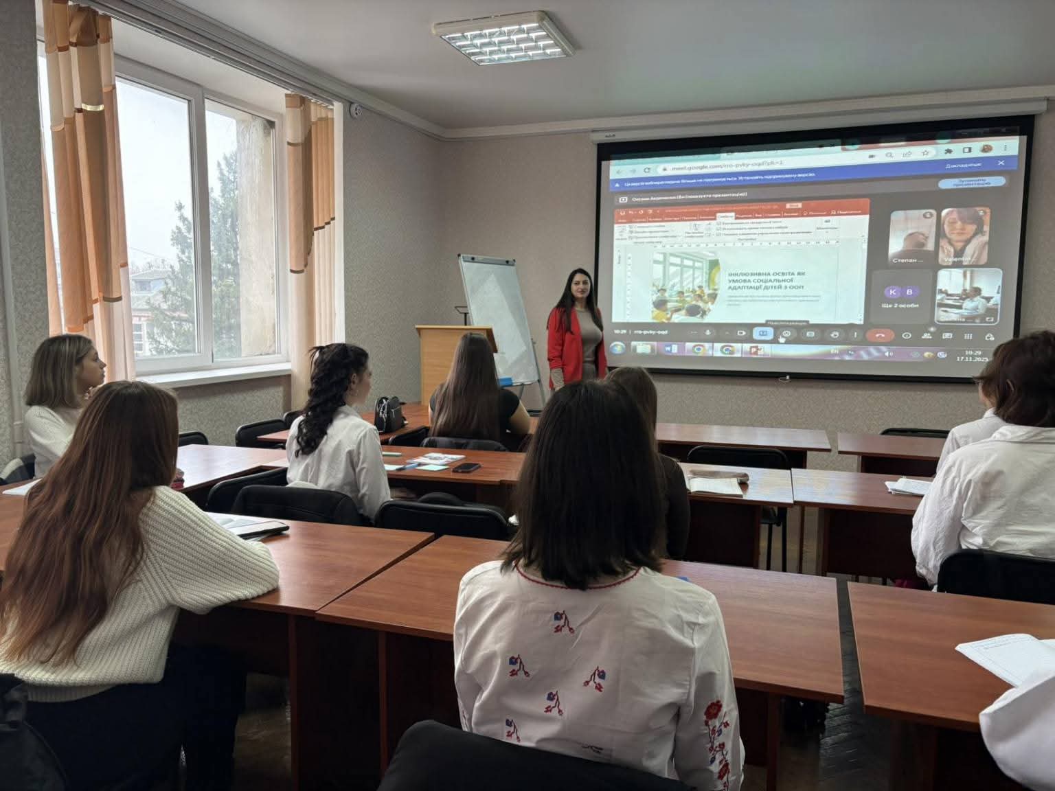 Здобувачі освіти активно проявляли зацікавленість у темі, долучалися до дискусії, ставили змістовні запитання та висловлювали власні міркування щодо актуальних проблем і перспектив розвитку інклюзивної освіти в Україні.