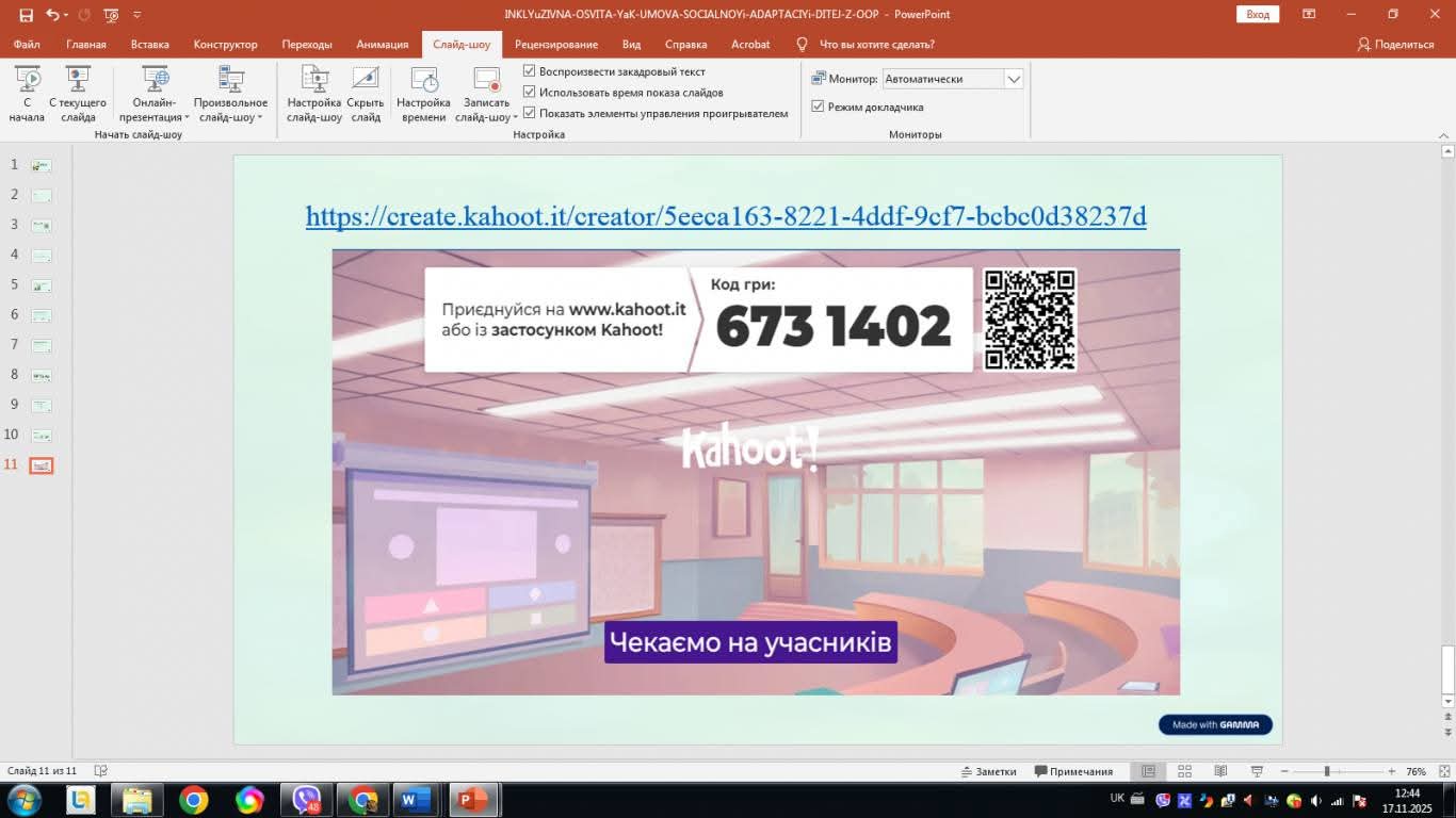 Підсумковим етапом заняття стала освітня інтерактивна гра на платформі «Kahoot», що дала змогу оцінити рівень засвоєння матеріалу та водночас сприяла формуванню позитивної навчальної мотивації студентів.
