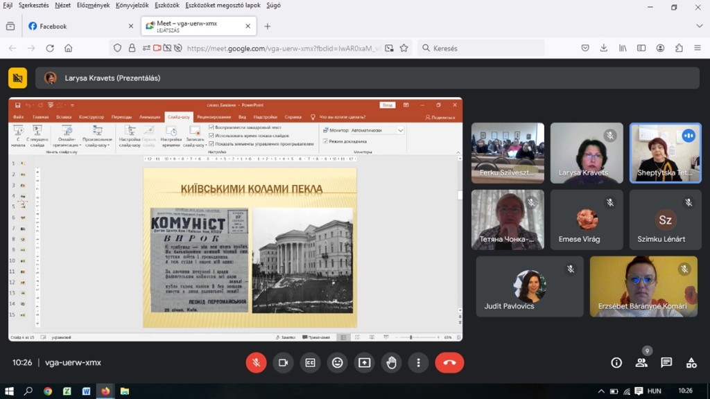 Тетяна Леонідівна розповіла про найбільше в Україні місце поховання жертв масових політичних репресій 1937–1941 рр., що знаходиться неподалік Києва. У фокусі уваги були українські письменники 1920–1930-х рр. («Розстріляне відродження»), закатовані сталінсько-більшовицькою владою у часи Великого терору. Зокрема йшлося про долі Майка Йогансена, Вероніки Черняхівської, Михайля Семенка, Юрія Вухналя, Івана Кулика та його дружину Люціану Піонтек та ін. Лекторка наголосила на безпідставності висунутих ув’язненим звинувачень та розповіла, як діяли енкаведисти, де утримували заарештованих, згадала й про сексотів. Вразило те, що серед розстріляних і похованих у Биківні, було багато людей різних національностей, у тому числі й угорці. Враження, яке лекція викликала в слухачів, сконцентроване в словах, сказаних під час обговорення однією слухачкою: «Я хотіла б, щоб про це знав увесь світ».