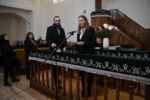 Після вітальної промови ректора присутні по черзі зачитали імена понад 300 жертв – уродженців Берегова, єдиним гріхом яких було те, що вони народилися угорцями, а потім поклали вінки пам’яті у вестибюлі реформатської церкви.